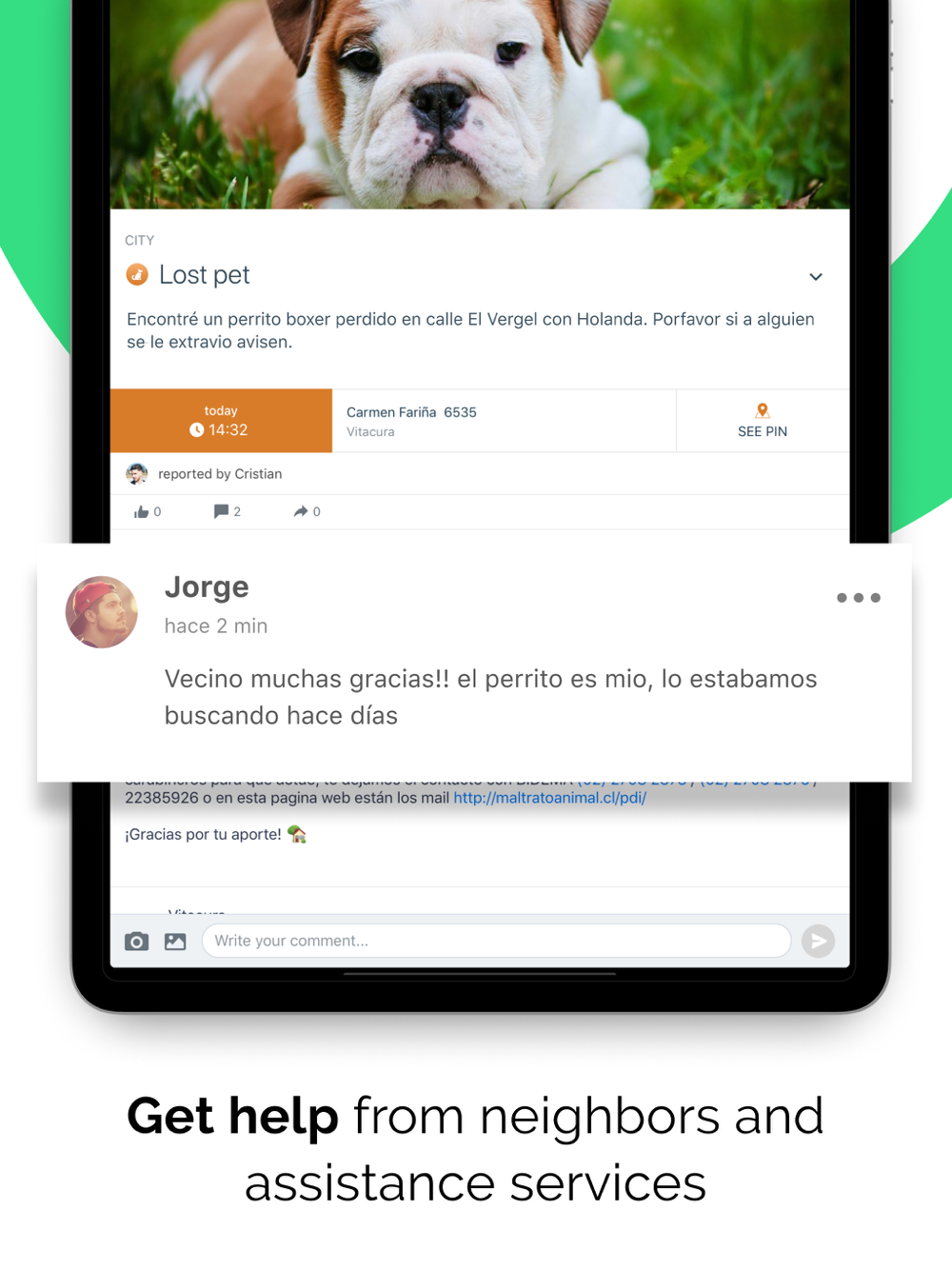 • Find out in real time what happens in your neighborhood and city.