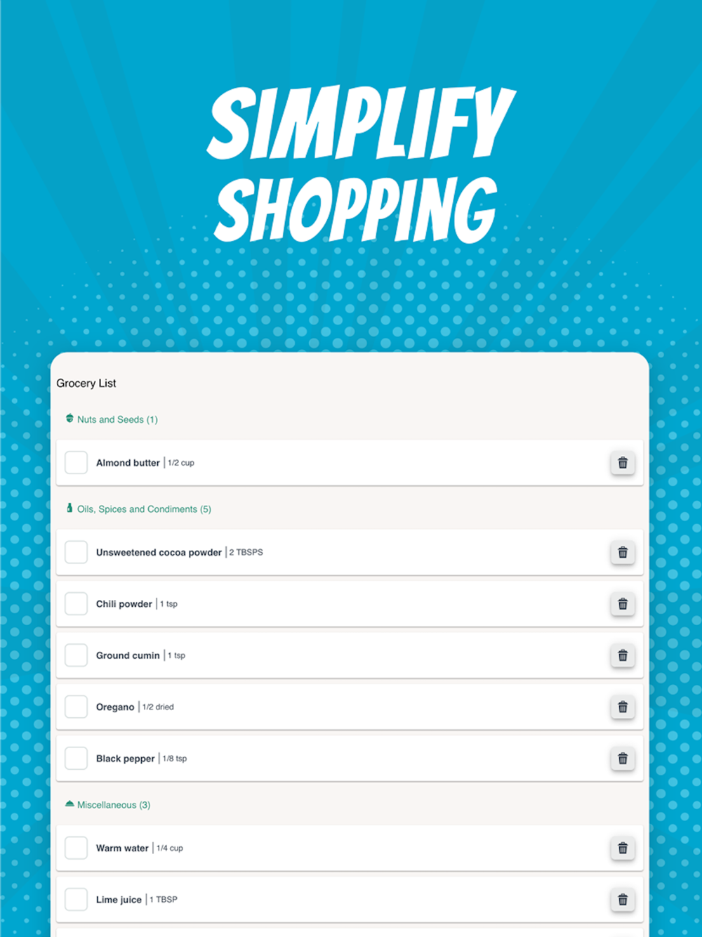 This app includes a handy shopping list for the week. Choose to follow the plan “as is”, or easily replace any recipes you don’t want, for one you do want with one of the hundreds of extra recipes in the app to choose from. You can also customize the plan to feed just you or your whole family.