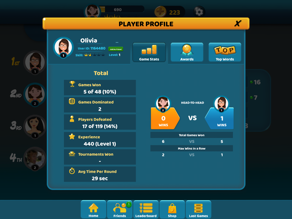 However, the multiplayer challenge really makes this different. Each round lasts just sixty seconds, and as you drag letters into your word slots above, there are other people doing the same. You battle against the time limit, your own vocabulary and the other players all at once!