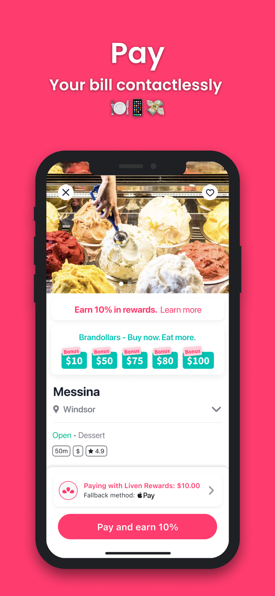 Make instant payments at the register with your phone! Simply select the merchant you're paying with, tap "Pay now", and then watch the rewards roll in.
