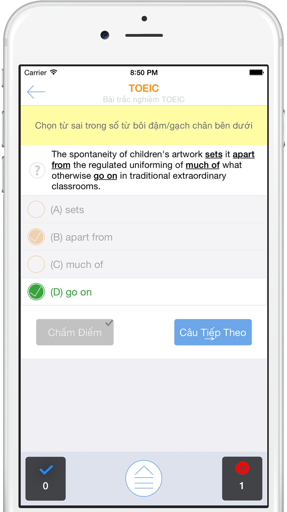 Hãy thử ứng dụng làm bài tập trắc nghiệm Tiếng Anh tuyệt vời của chúng tôi và cho chúng tôi biết ý kiến của bạn :)