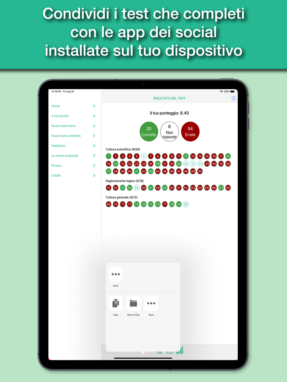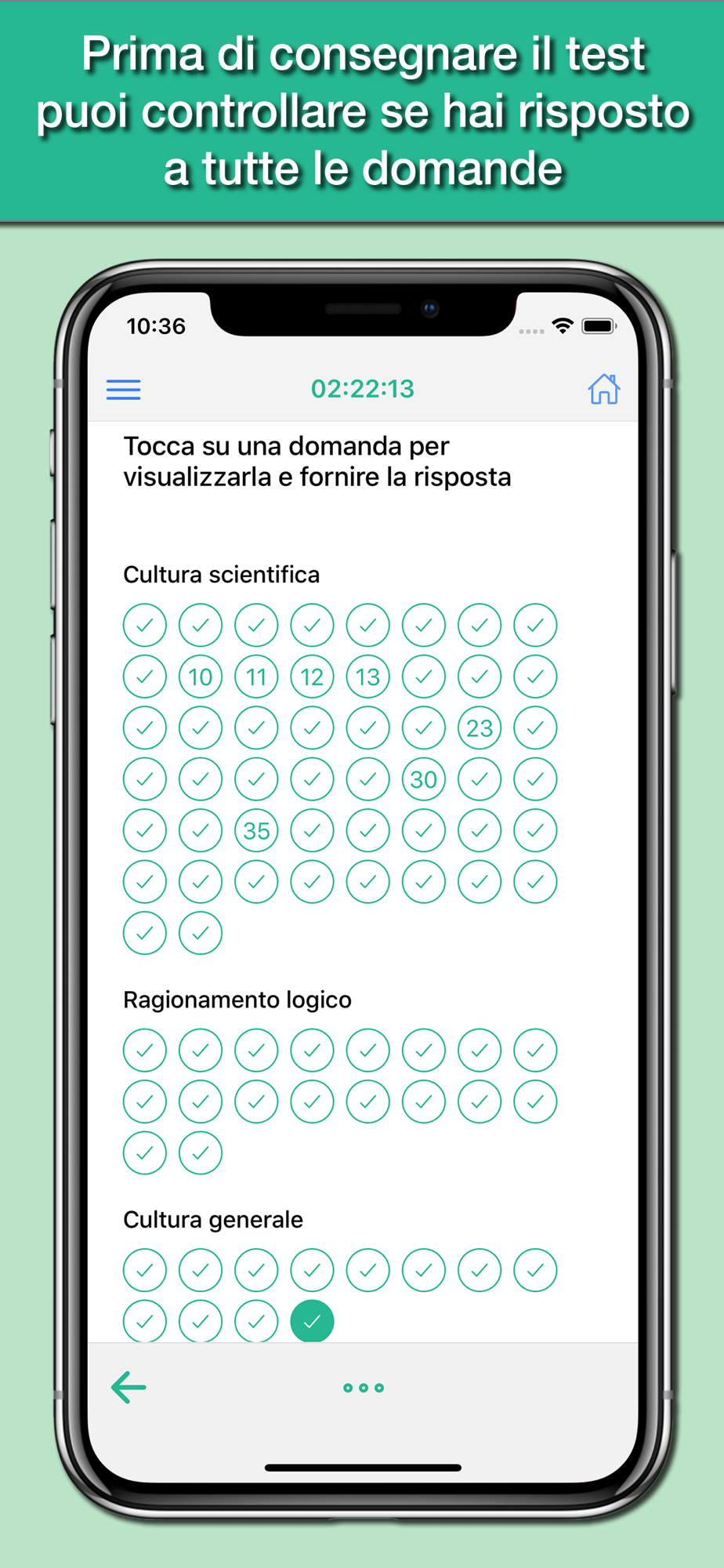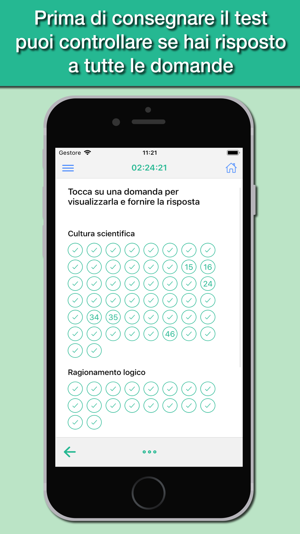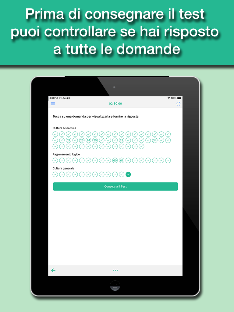 The app is designed to simulate as close as possible the test you actually have to deal with, with all the topics of the test: Scientific Knowledge, Logical Skills, and General Knowledge.