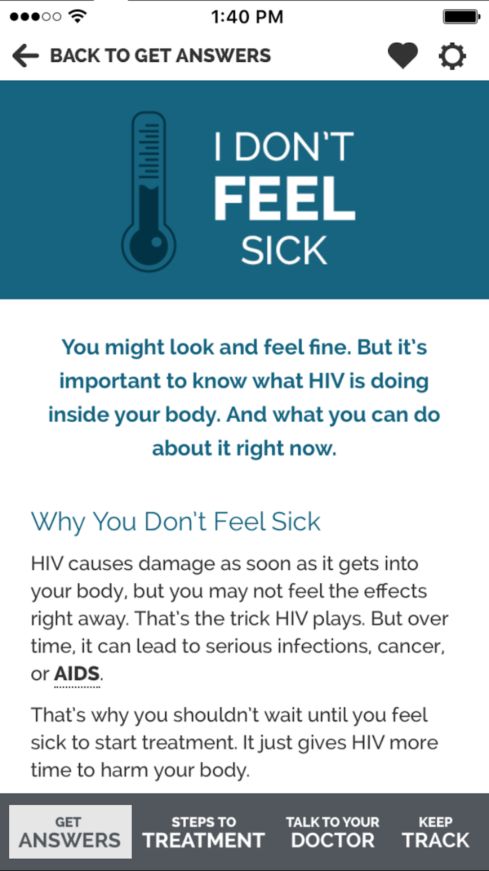 And HIV Answers helps keep things private. The HIV Answers app simply appears as “Answers” on your home screen.