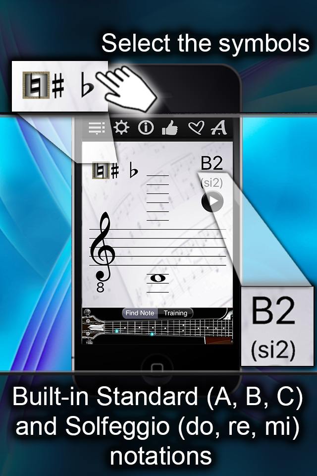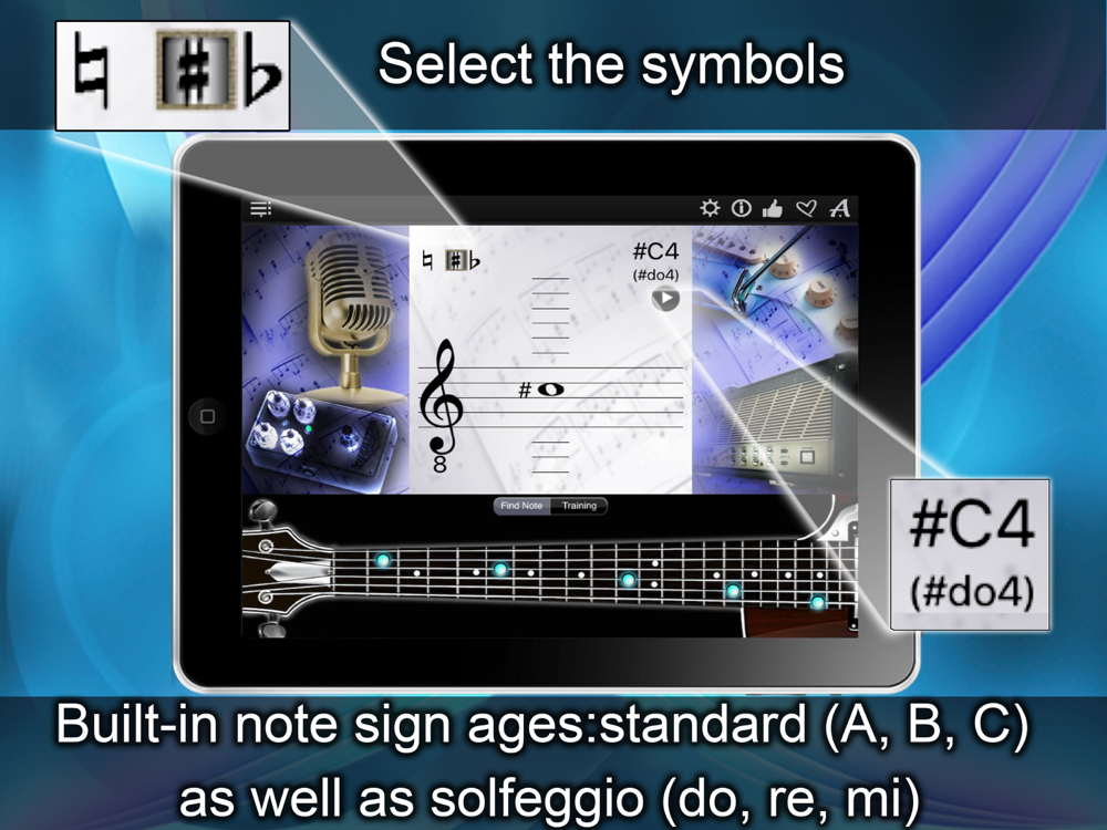 3. Built-in note sign ages: standard (A, B, C) as well as solfeggio (do, re, mi).