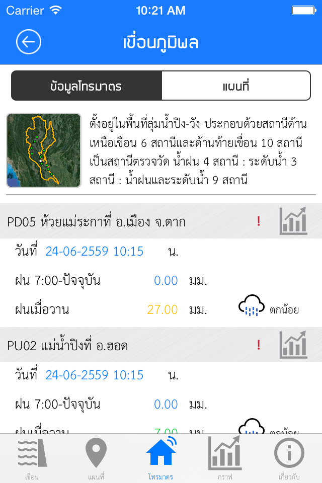 EGAT Water เป็นแอพพลิเคชั่นที่จัดทำขึ้นโดย การไฟฟ้าฝ่ายผลิตแห่งประเทศไทย (กฟผ.) เพื่อรายงานสถานการณ์น้ำในเขื่อนที่อยู่ภายใต้การดูแลของ กฟผ. รวมถึงข้อมูลปริมาณน้ำฝนและสภาพน้ำท่าในพื้นที่ลุ่มน้ำที่เขื่อนตั้งอยู่ ทั้งด้านเหนือเขื่อนและด้านท้ายเขื่อนจากระบบโทรมาตร ที่รายงานผลการตรวจวัดจากสถานีสนามแบบอัตโนมัติ เพื่อให้ผู้ใช้สามารถติดตามสถานการณ์น้ำฝน ระดับน้ำ ปริมาณน้ำที่ไหลลงอ่างเก็บน้ำและสภาพน้ำในลุ่มน้ำตามจุดสำคัญๆได้อย่างต่อเนื่องและรวดเร็ว
