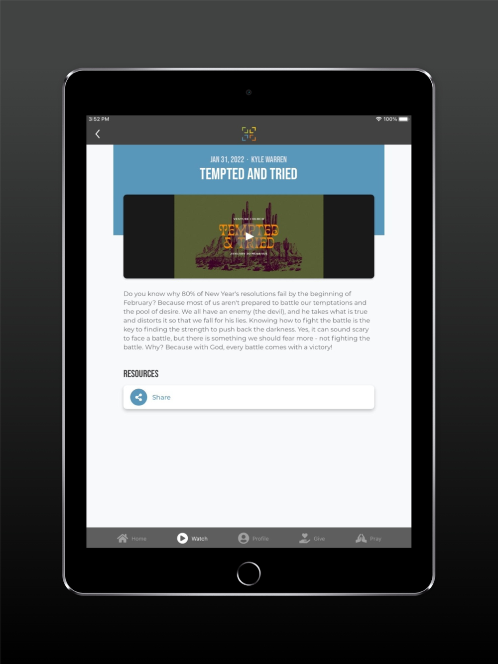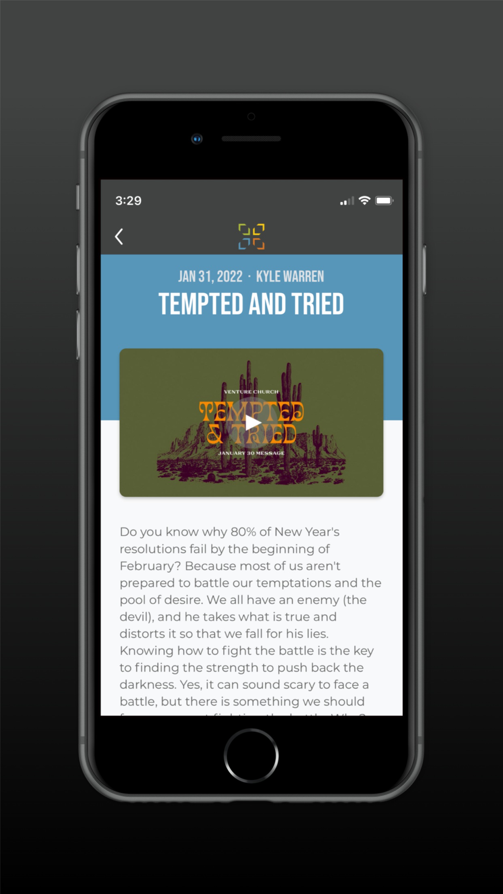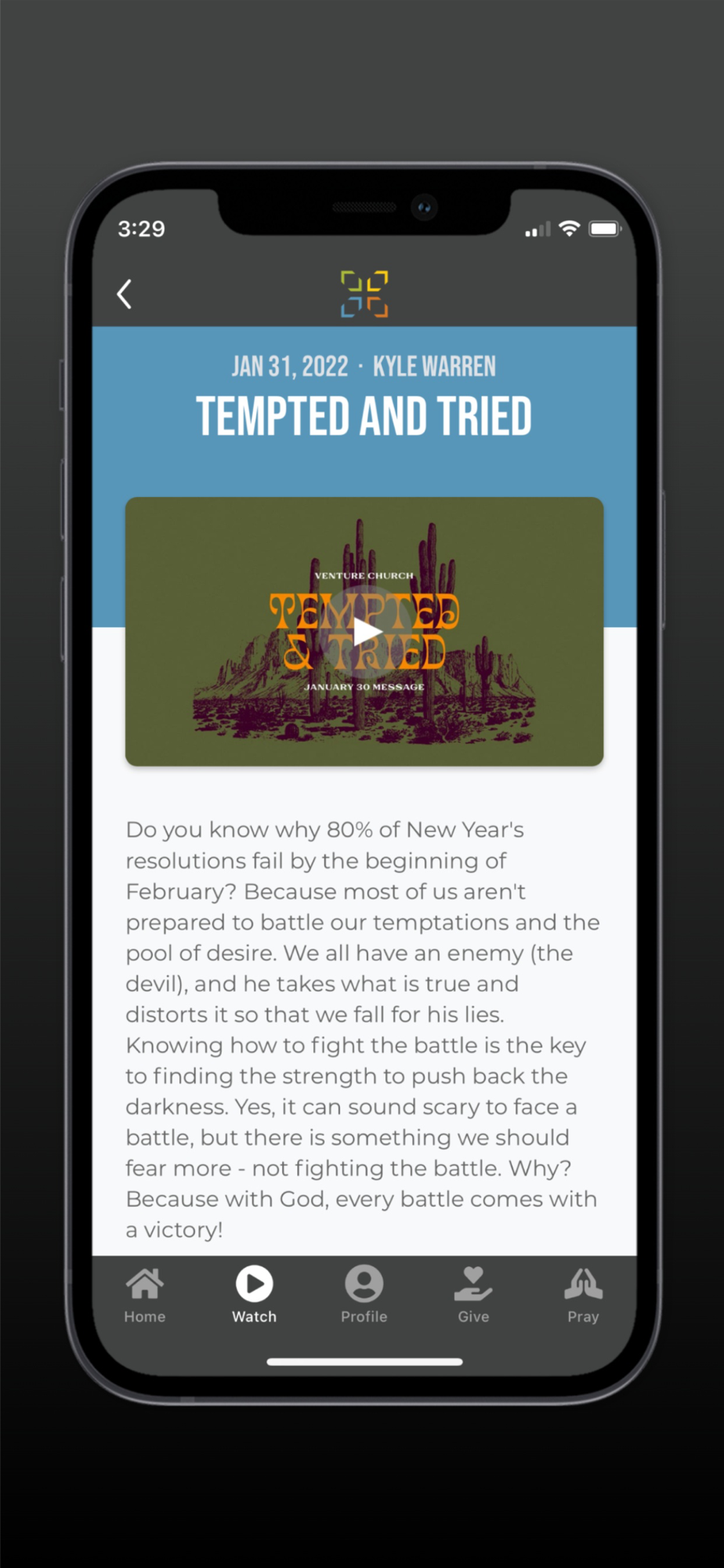 This free app allows you to connect with Venture Church by watching our Live Stream, finding location information, watching or listening to past experiences, giving online and much more! You can even share with friends and family via social media and email.