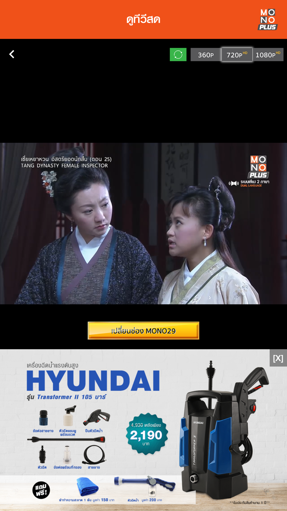 - สามารถเลือกปรับความละเอียดในการรับชมสดได้ แบบ 240P, 360P, 720P (HD), 1080P (HD)