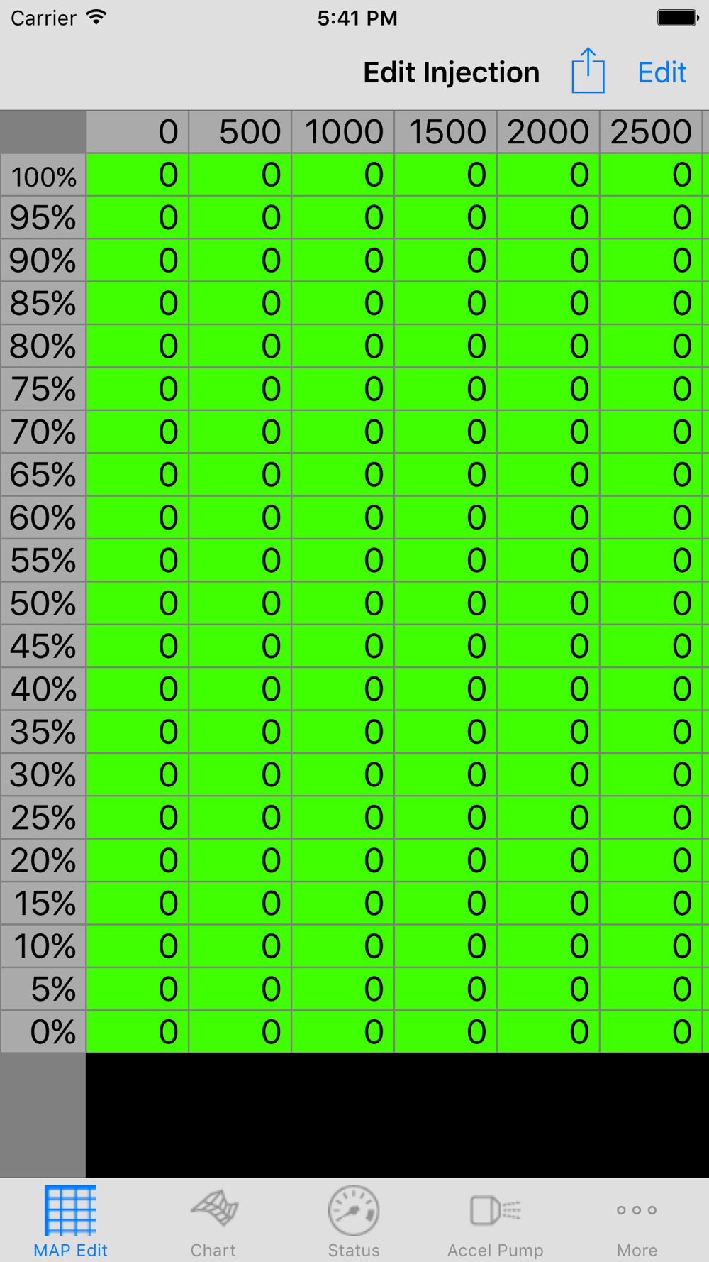 - The fuel map, showing real-time engine speed, throttle position of the current.