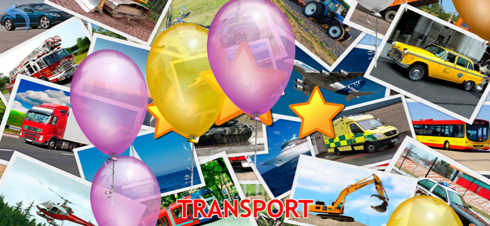 Together with your child, you can watch bright and colorful flashcards with accompanying sound, showing cars, machines and various forms of transportation while learning their names and the sounds which they make.