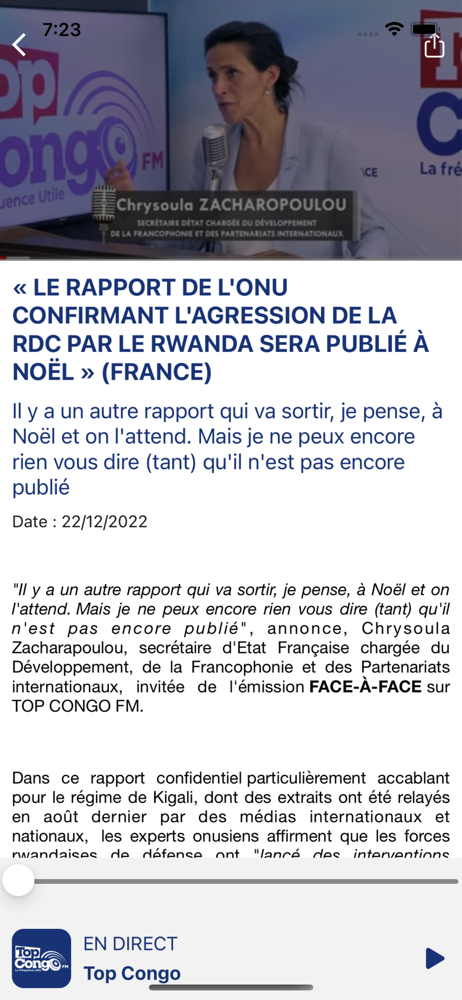 Bienvenue sur Top Congo FM - toute l'actualité Congolaise en direct.