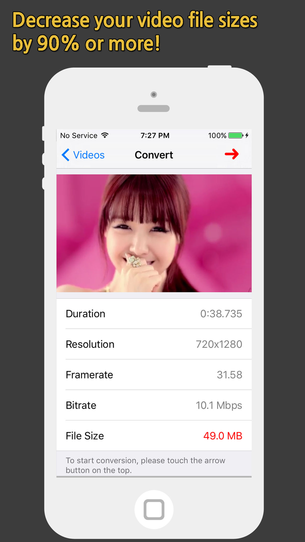 - It reduces the video file size up to 95%. (4GB -> 200MB)