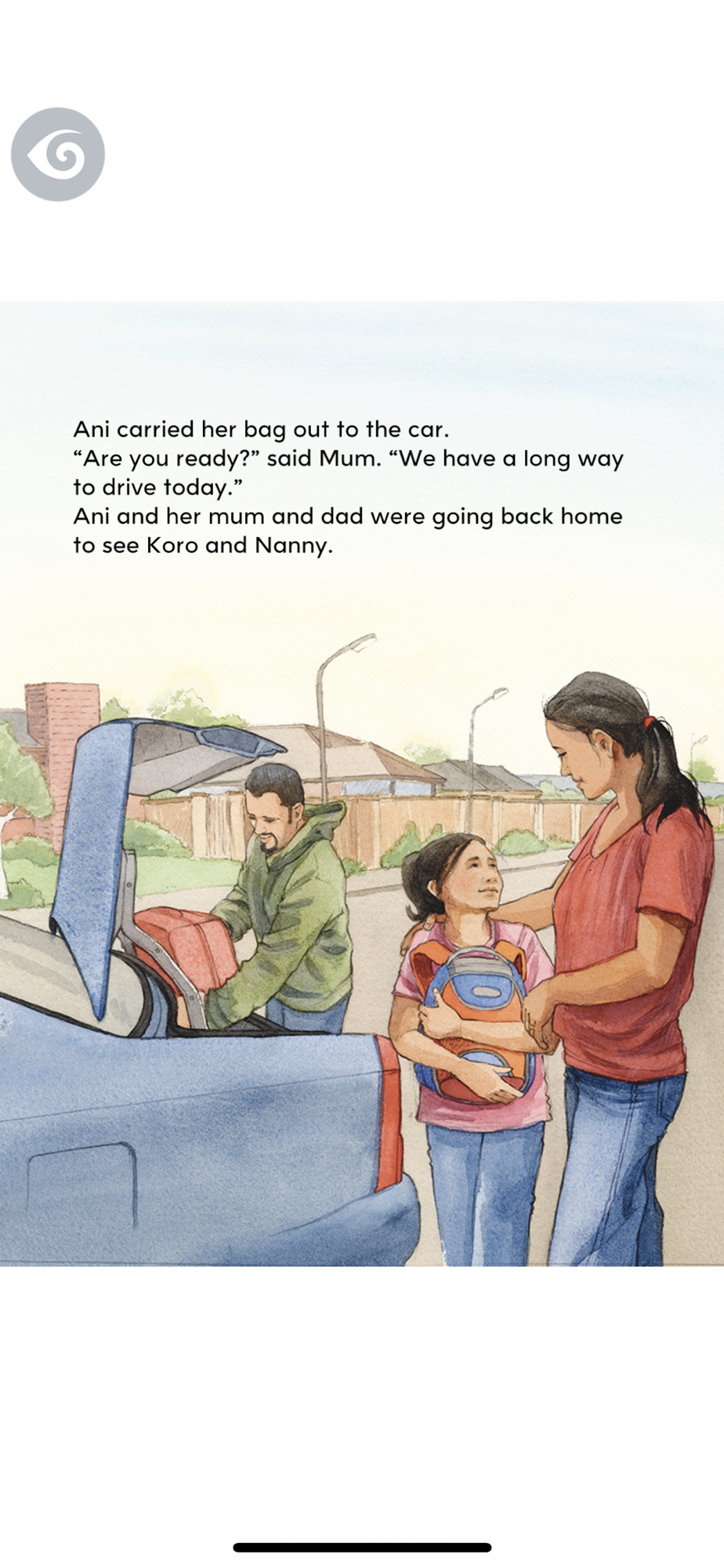 In this narrative, Ani and her parents travel to the countryside to visit Koro and Nanny. Ani wakes up in the night and is frightened of the dark. Koro hears her calling out and comes to comfort her. He takes her outside to show her the stars and tells her they are kaitiaki – guardians to watch over her and keep her safe.