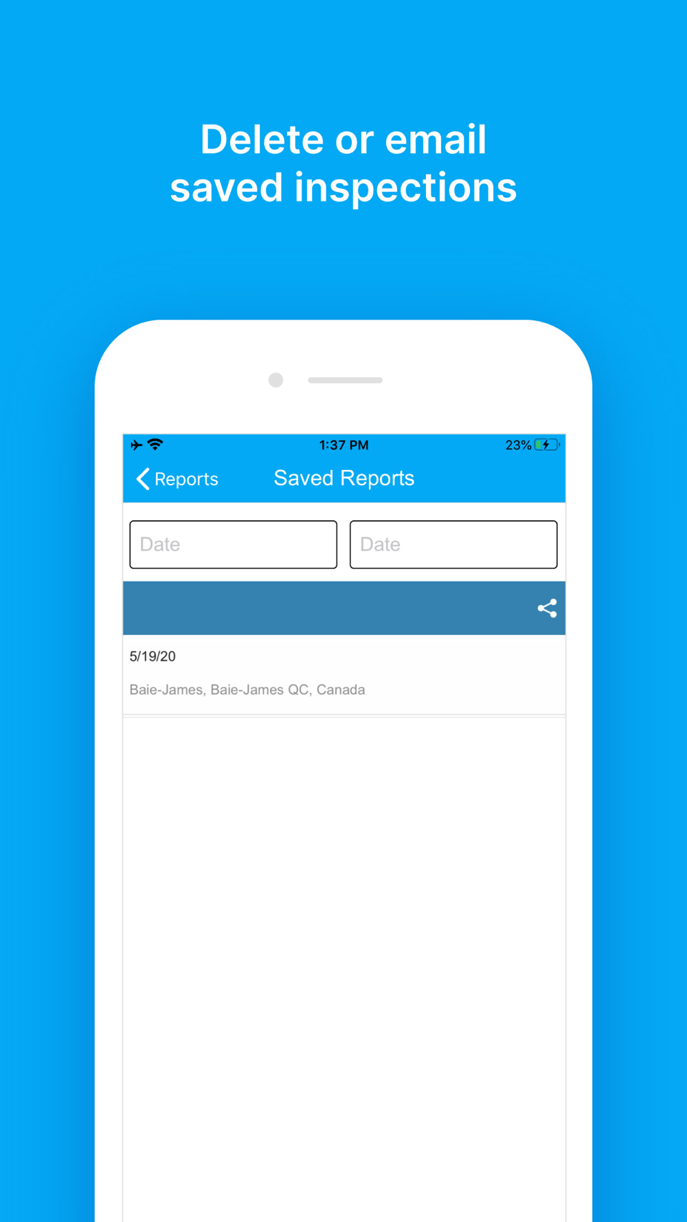 • Share inspection reports via email, text messages, cloud drives and other services