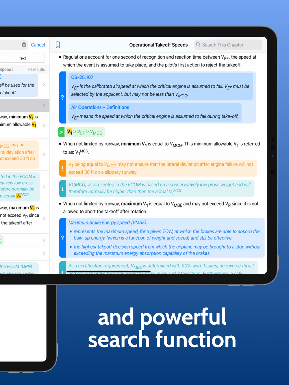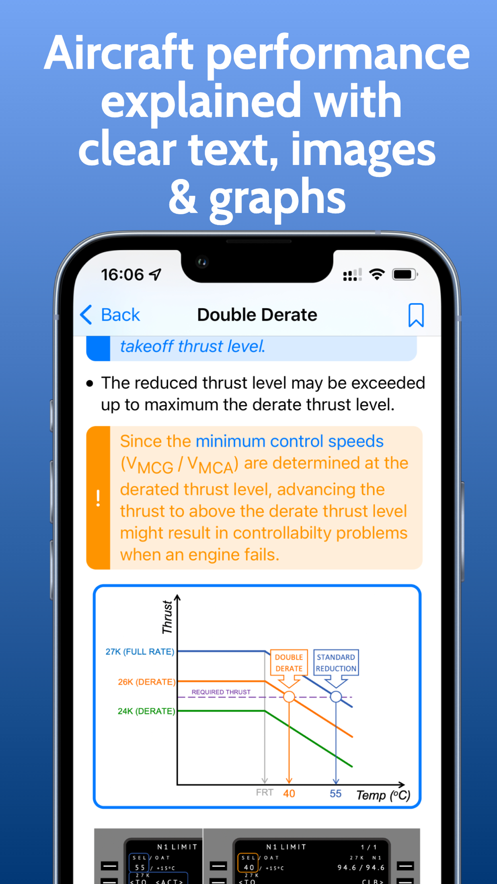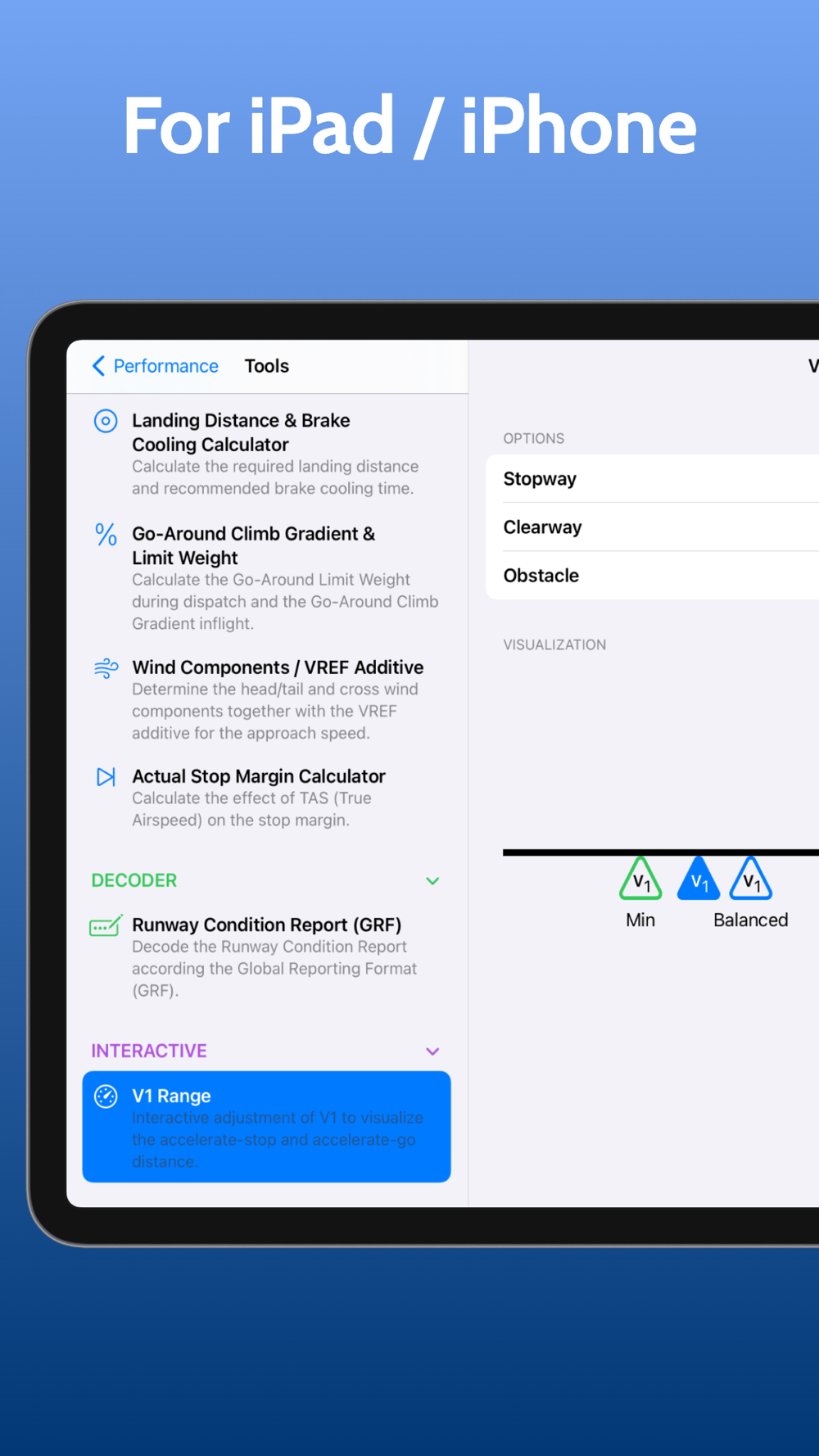 This app explains (EASA/FAA) regulations (based on ICAO) in lots of colorful pictures and additional remarks and you can navigate through BASIC PERFORMANCE NOTES, divided into TAKEOFF (covering a.o. legal performance requirements, reduced takeoff thrust), ENROUTE (covering a.o. cruise altitude/speed, driftdown) and LANDING Performance chapters (covering a.o. dispatch/inflight requirements) and also through the various performance data provided by Boeing in the chapters under PERFORMANCE DATA.