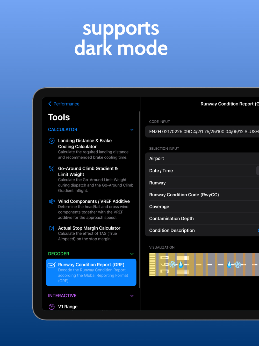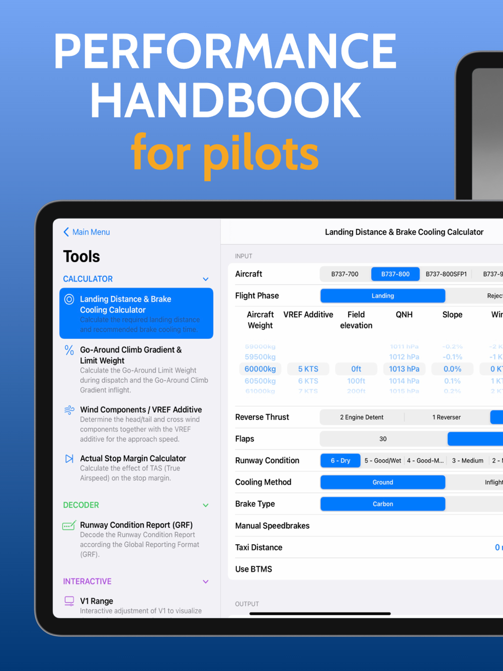 Besides the tools, the app contains all a pilot or dispatcher needs to know about aircraft performance for large civil twin jet aircraft in general and for the Boeing 737 in special. Due to commonality, the information in this app may also serve as reference for other Boeing types.