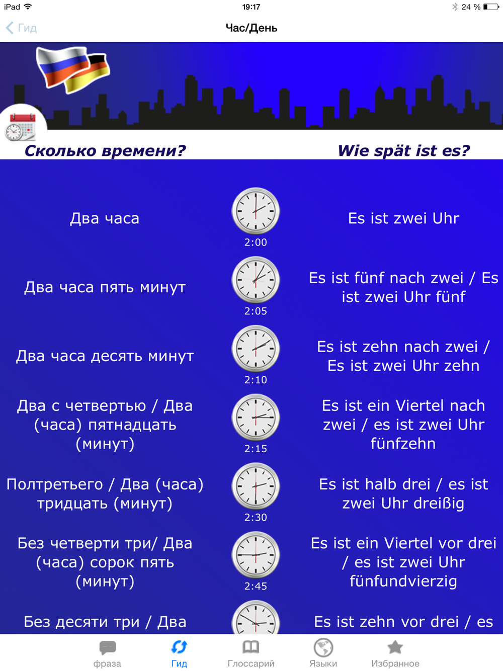 Поздороваться, заказать номер, узнать дорогу, попросить о помощи, найти ресторан, подготовиться к визиту, поблагодарить кого-либо, задать практические вопросы... Вы найдете в этом приложении все необходимые вам за рубежом фразы, переведенные профессиональными переводчиками.