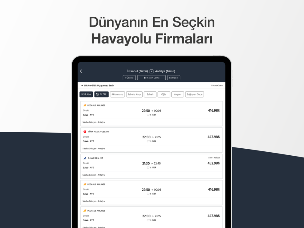 Biletall provides its customers the cheapest online flight and bus tickets in Turkey. With this app you can make a reservation, book your ticket online and buy it right away. All of the best airlines and bus companies are listed such as Turkish Airlines, Anadolu Jet, Atlas Global, Onur Air, Pegasus and Varan, Ulusoy, Metro Turizm, Kamil Koc and more. Your travel ticket is one touch away from you. Download Biletall now for free