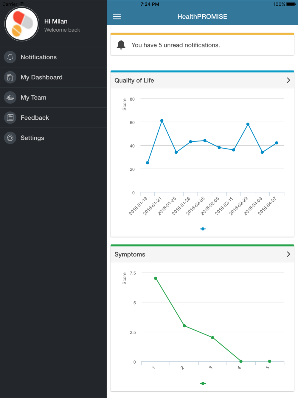 Health Promise is Patient-centered collaborative disease management app which allows capturing of patient reported data to capture quality of life, and disease phenotype information.