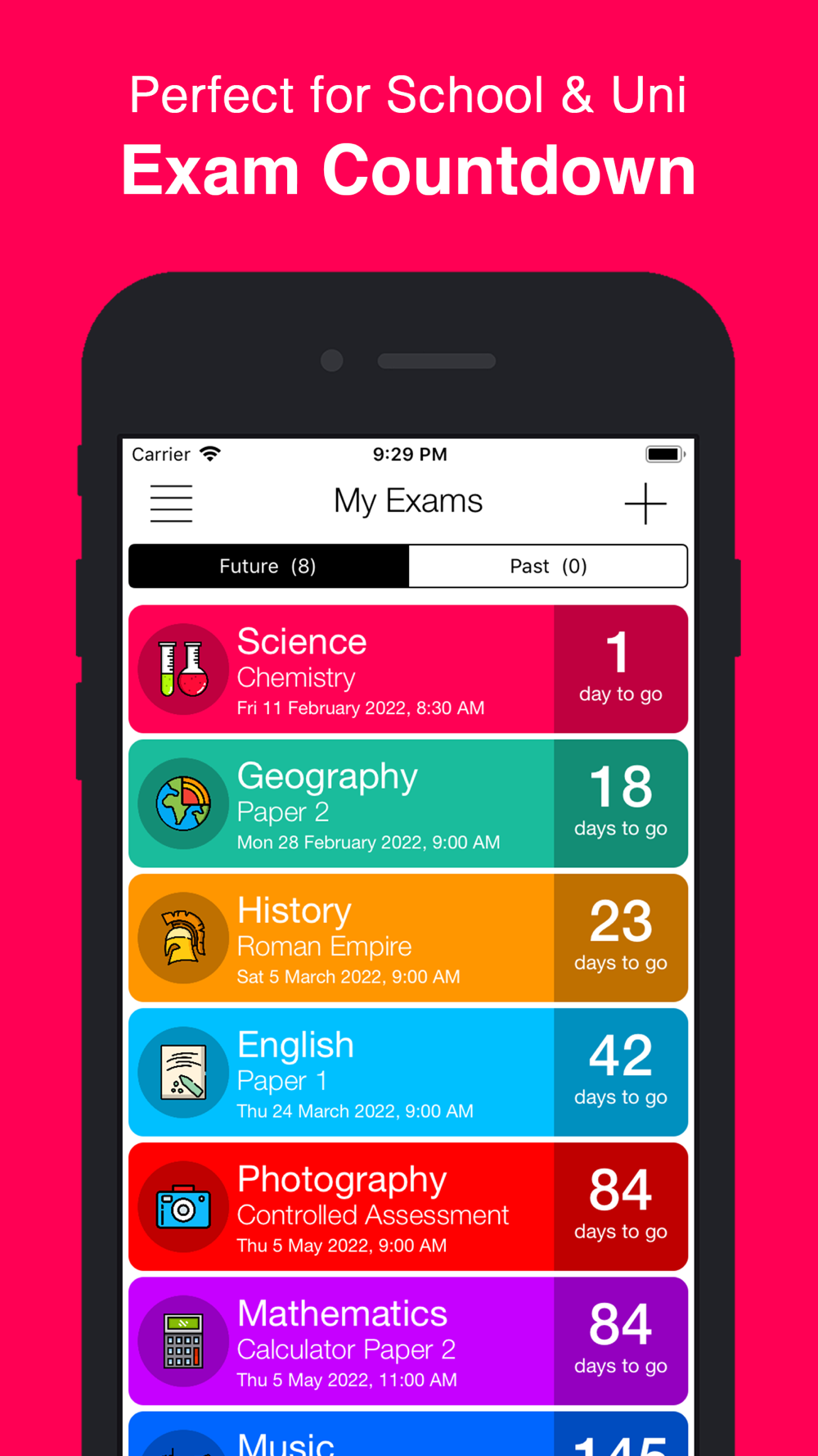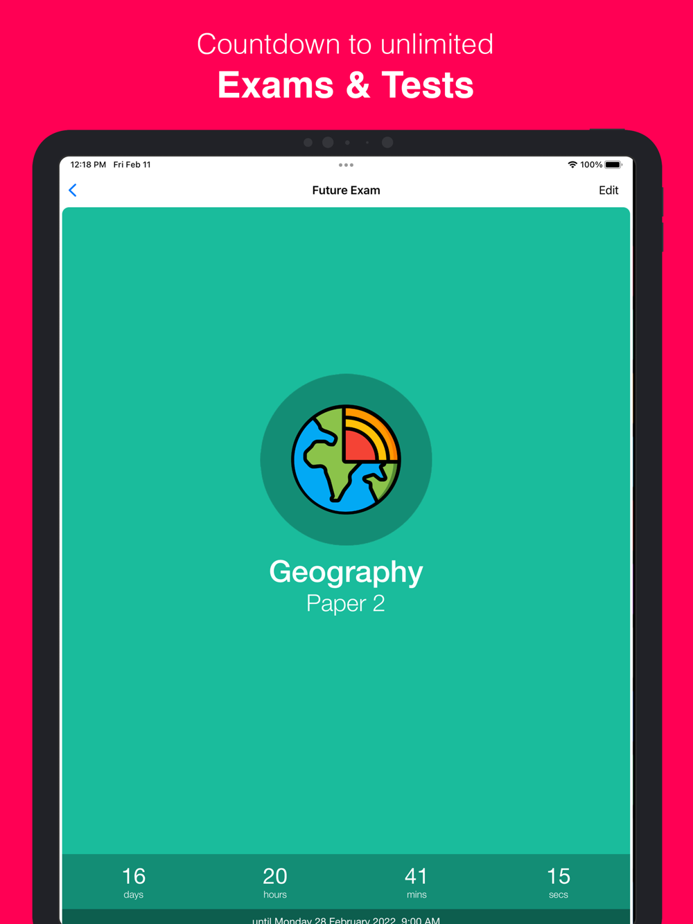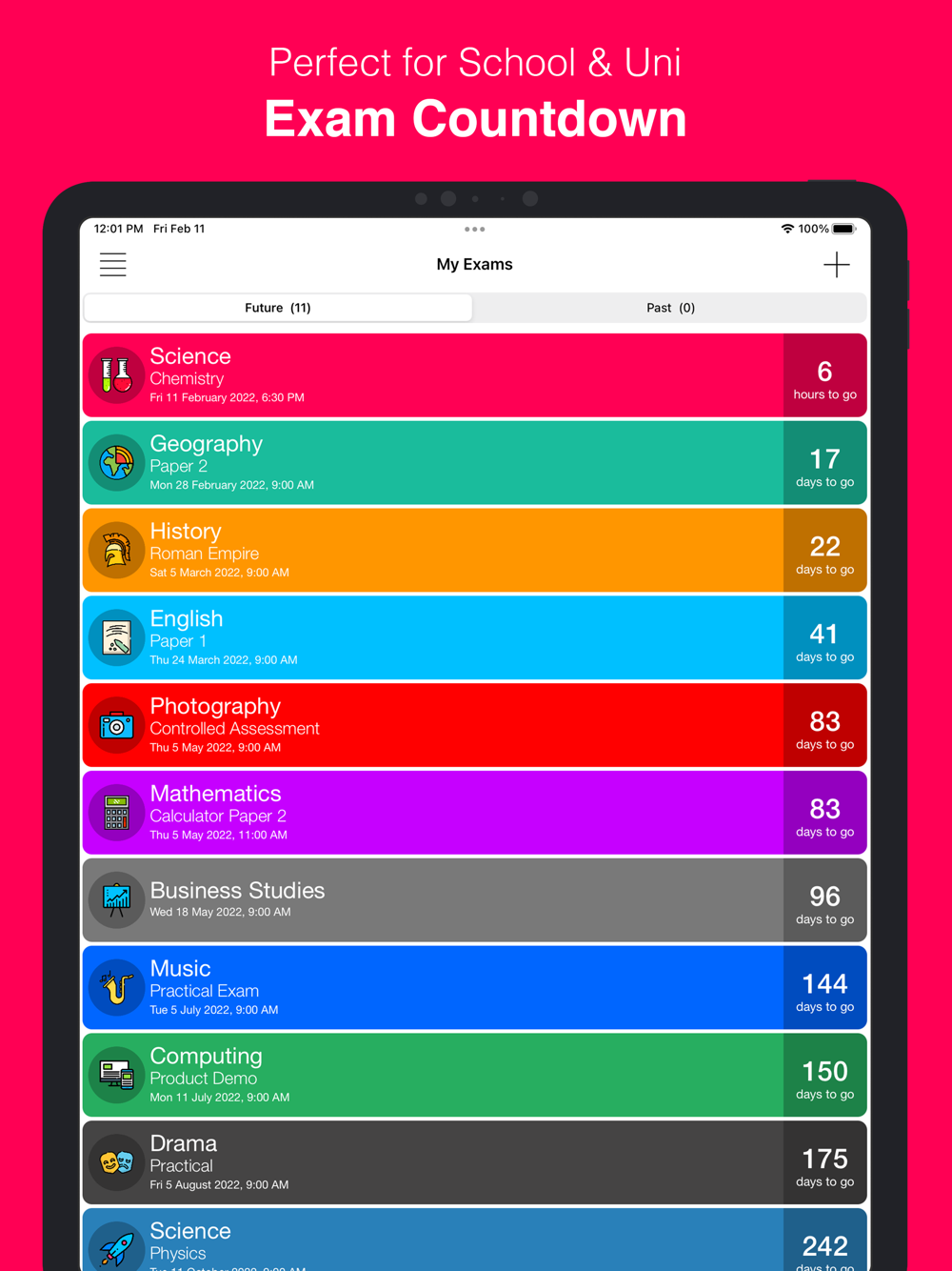 Exam Countdown is a beautifully simple countdown timer, reminder, exam & test timetable app for students, teachers and schools.