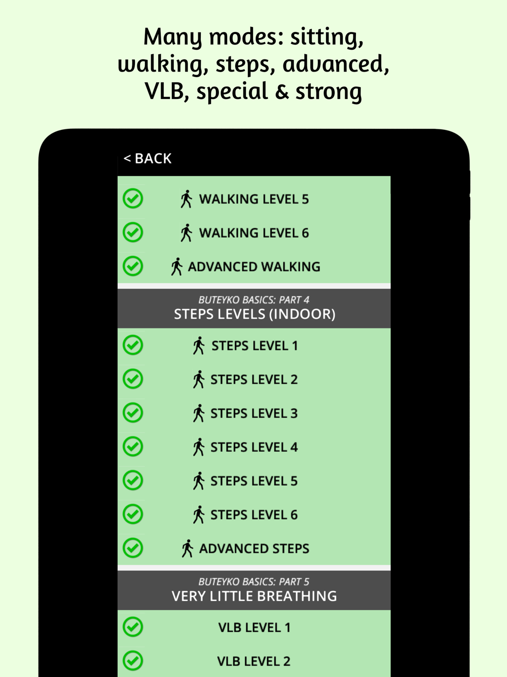 The app is optimized for use with the courses, workshops and webinars available at ButeykoBreathing.com. Your instructor will customize the program for you and recommend specific levels and techniques to achieve best possible results. The app contains many additional settings to customize each level.