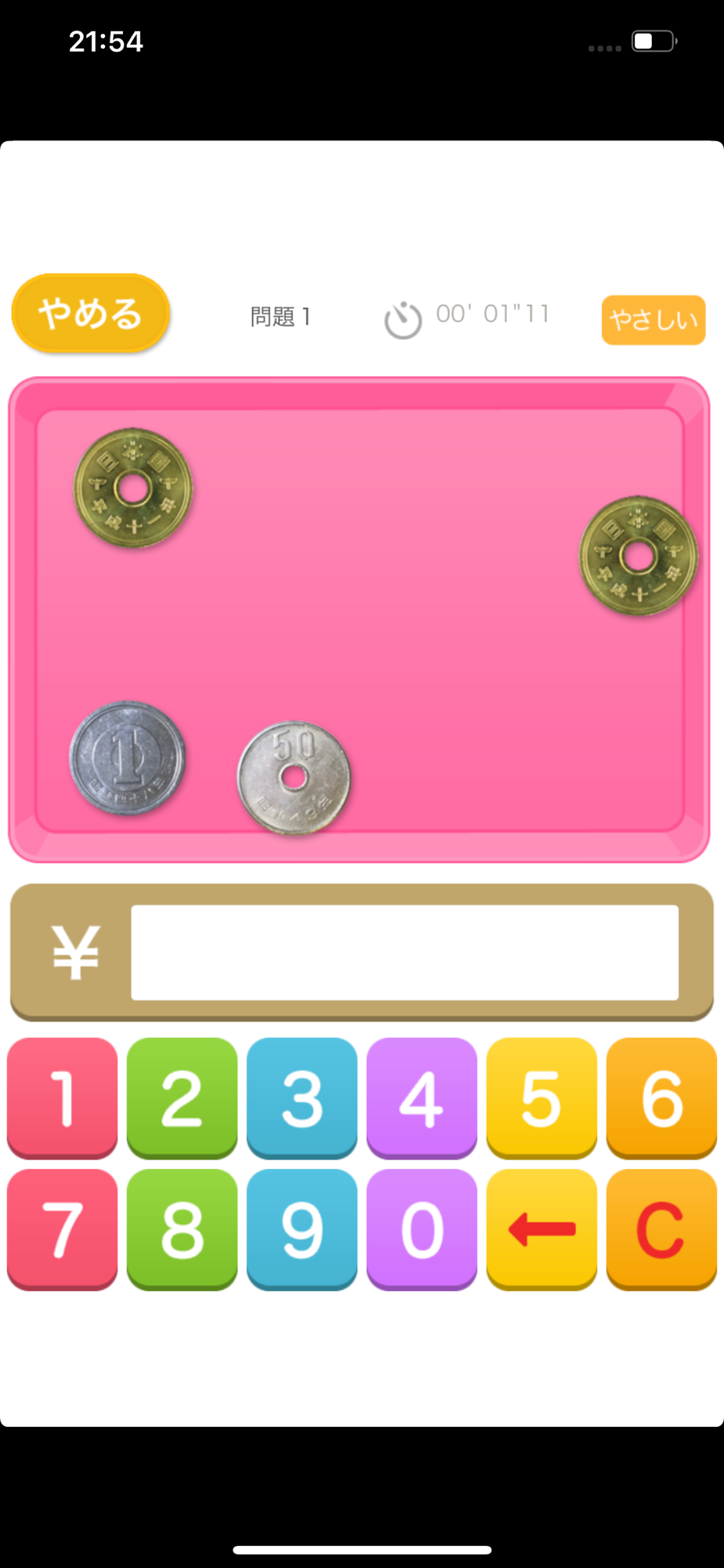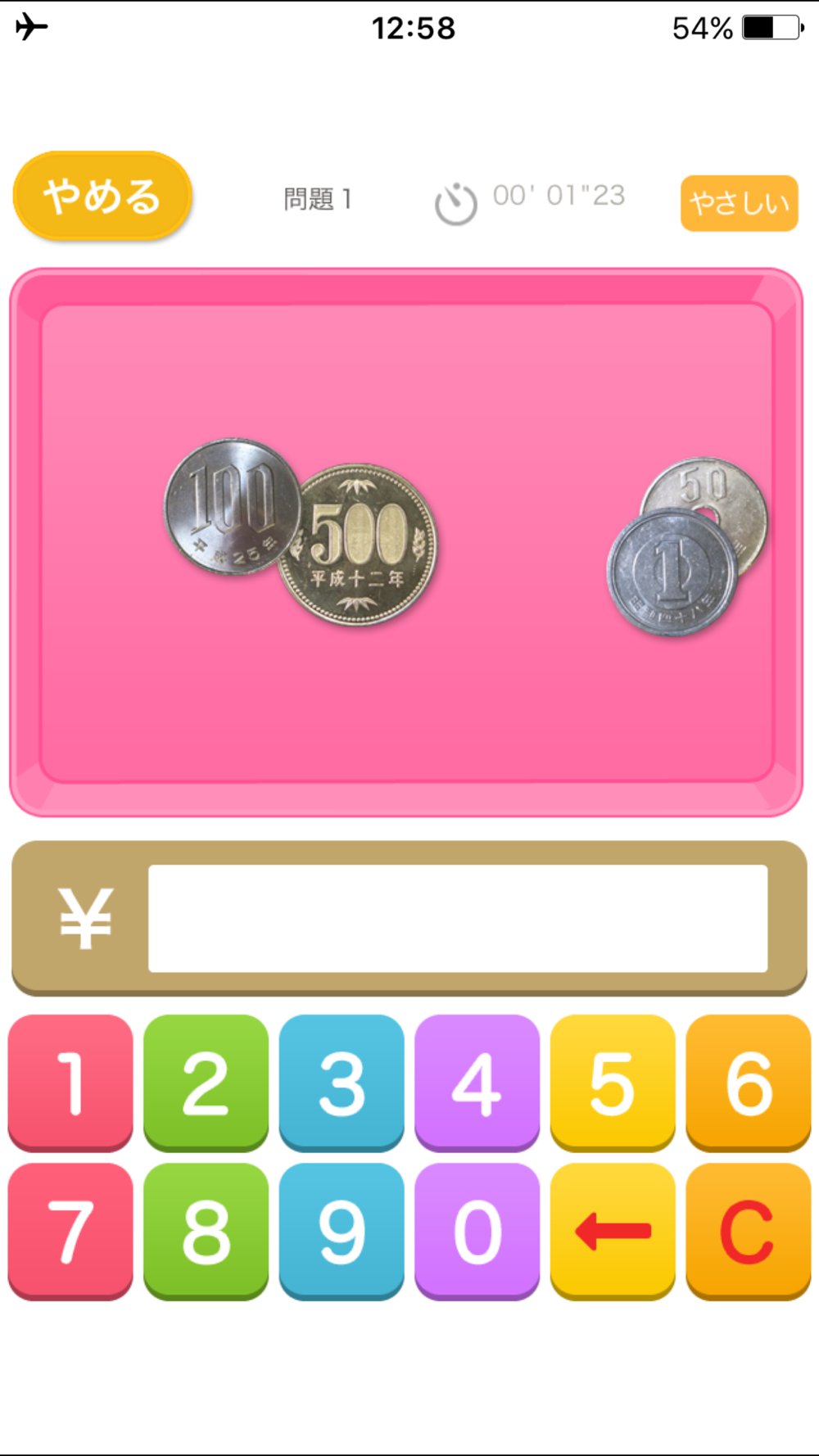 お金の合計を答えるアプリです。