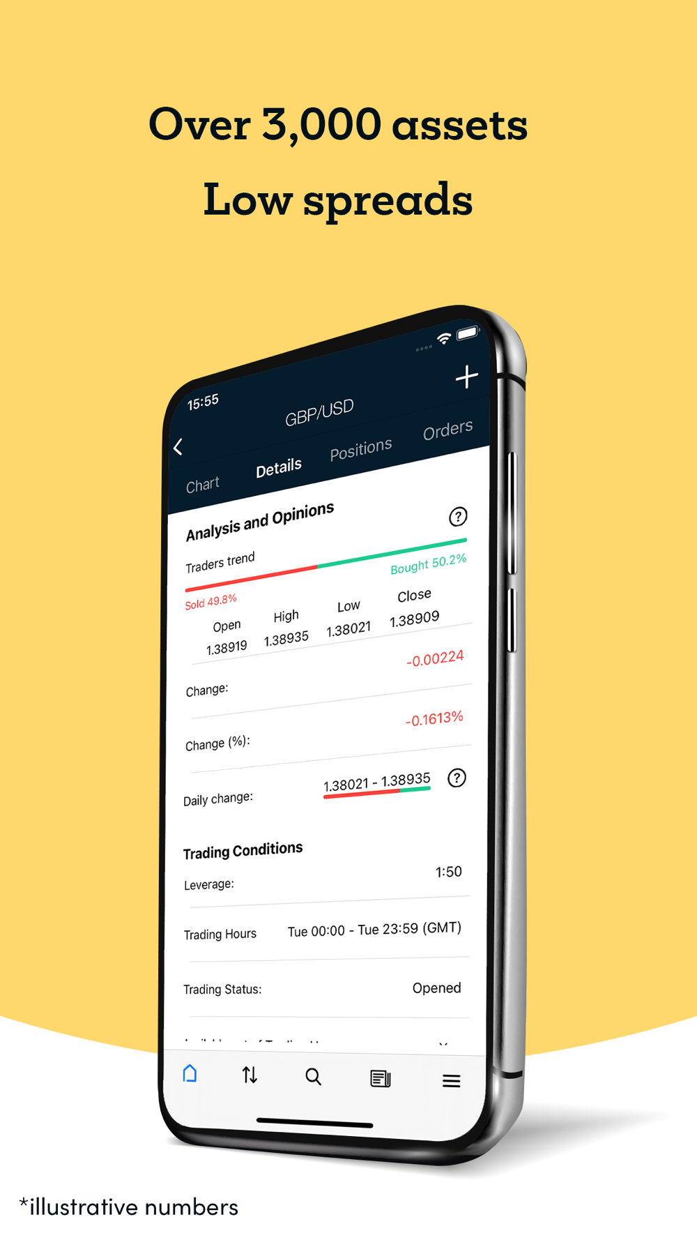 It is simple to start trading with the Markes.com app. Open an account or use your existing one to stay informed and trade on the go. Enjoy hassle-free trading by joining the hundreds of thousands which made Markets.com their home for trading! In addition to the ease of use of our mobile app, Markets.com also provides its customers with great trading conditions which include 0 commission and tight spreads**.