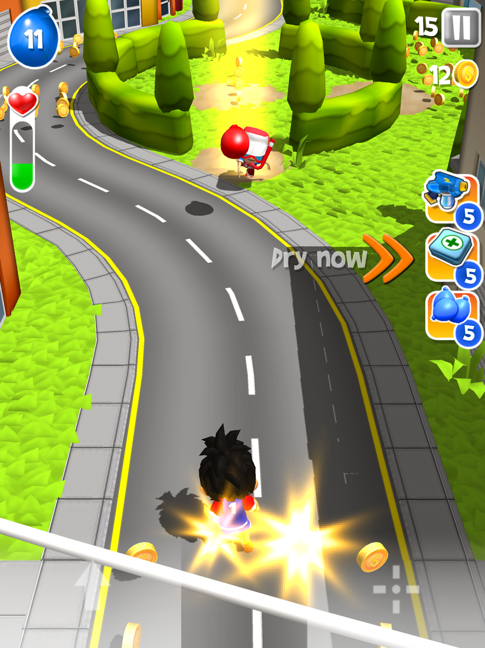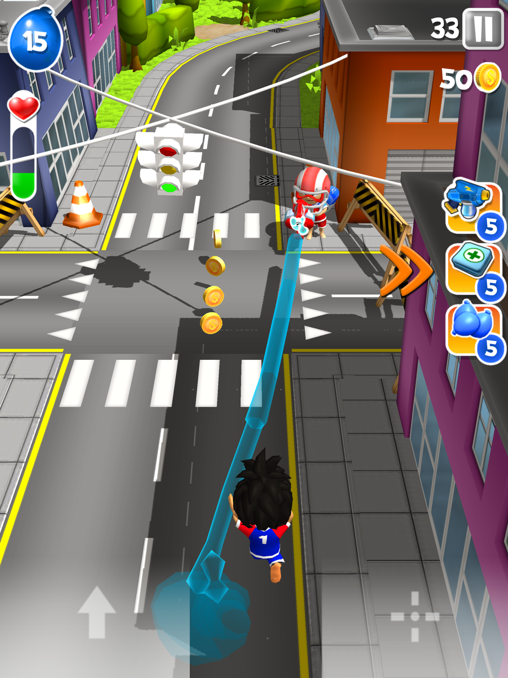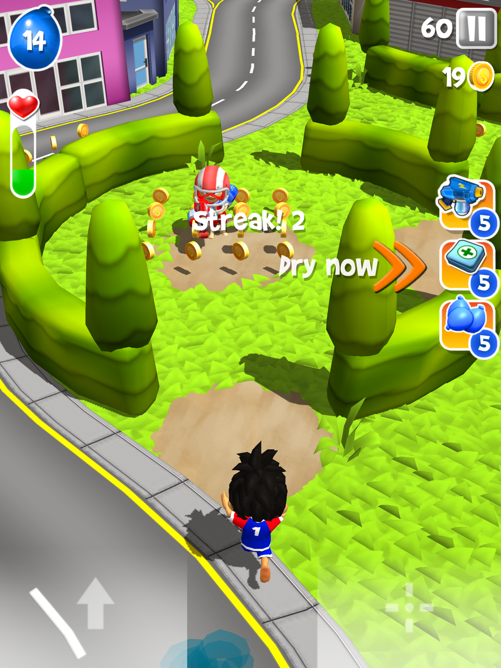 Tilt & Tap your way through town, Climb buildings, surf cars and gear up for the boss fights with shields, water packs and big f...loating waterguns.
