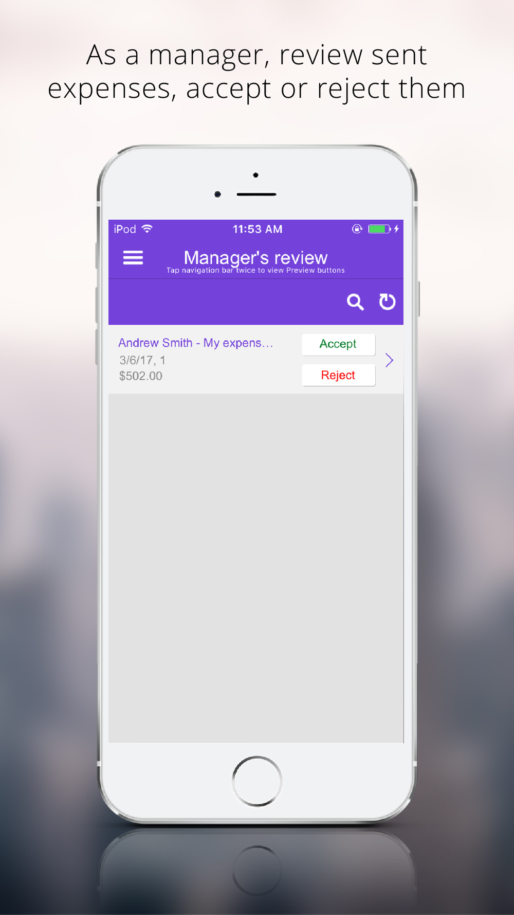 • Approve employees’ expense reports and check statistics in an easy to use Chars tab