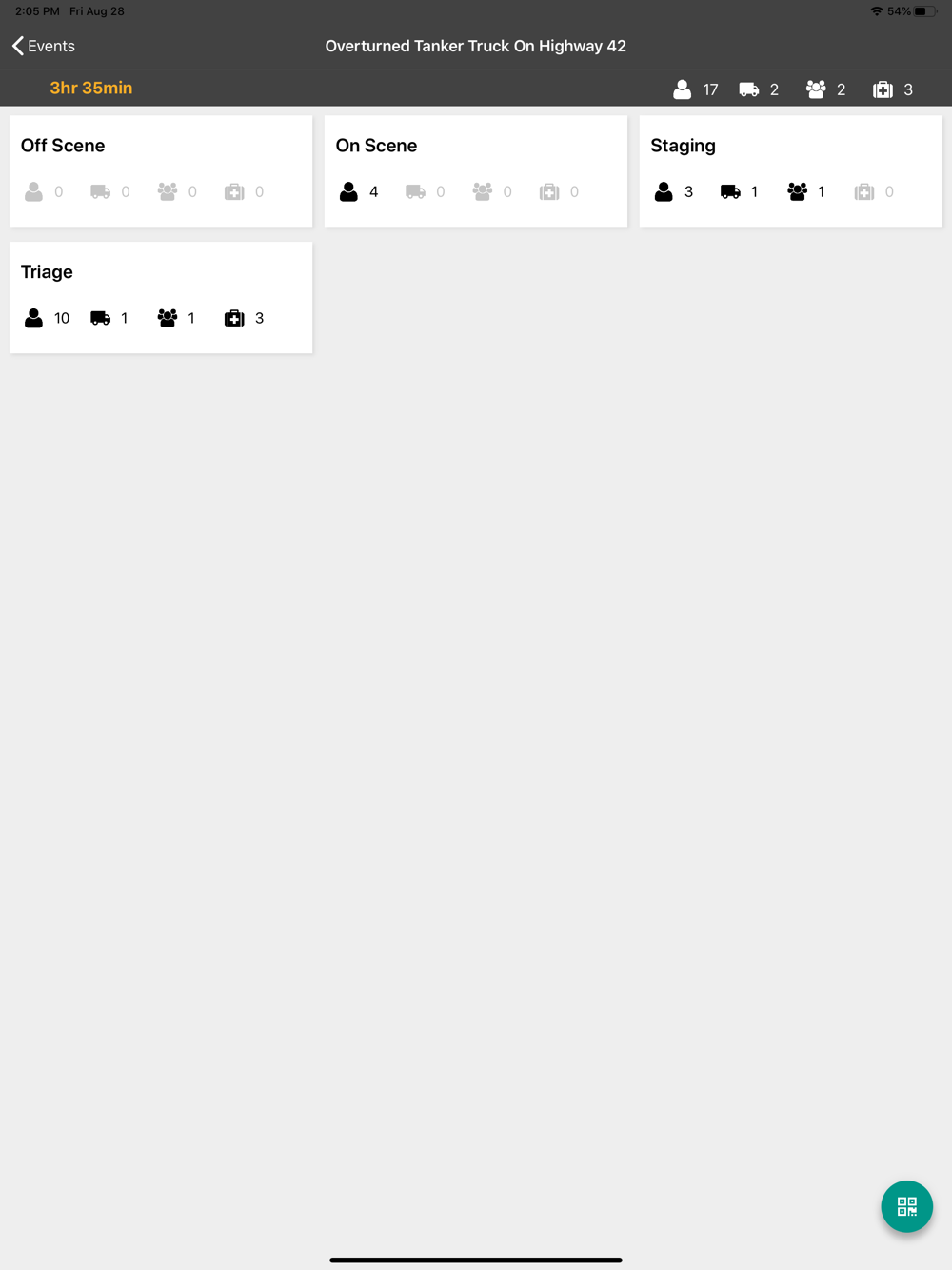 Resource Tracking – Read personnel, equipment, or company tags (PDF417 & QR Codes). Electronically scan or manually place them into assignments and create a date and time stamped history of activity.