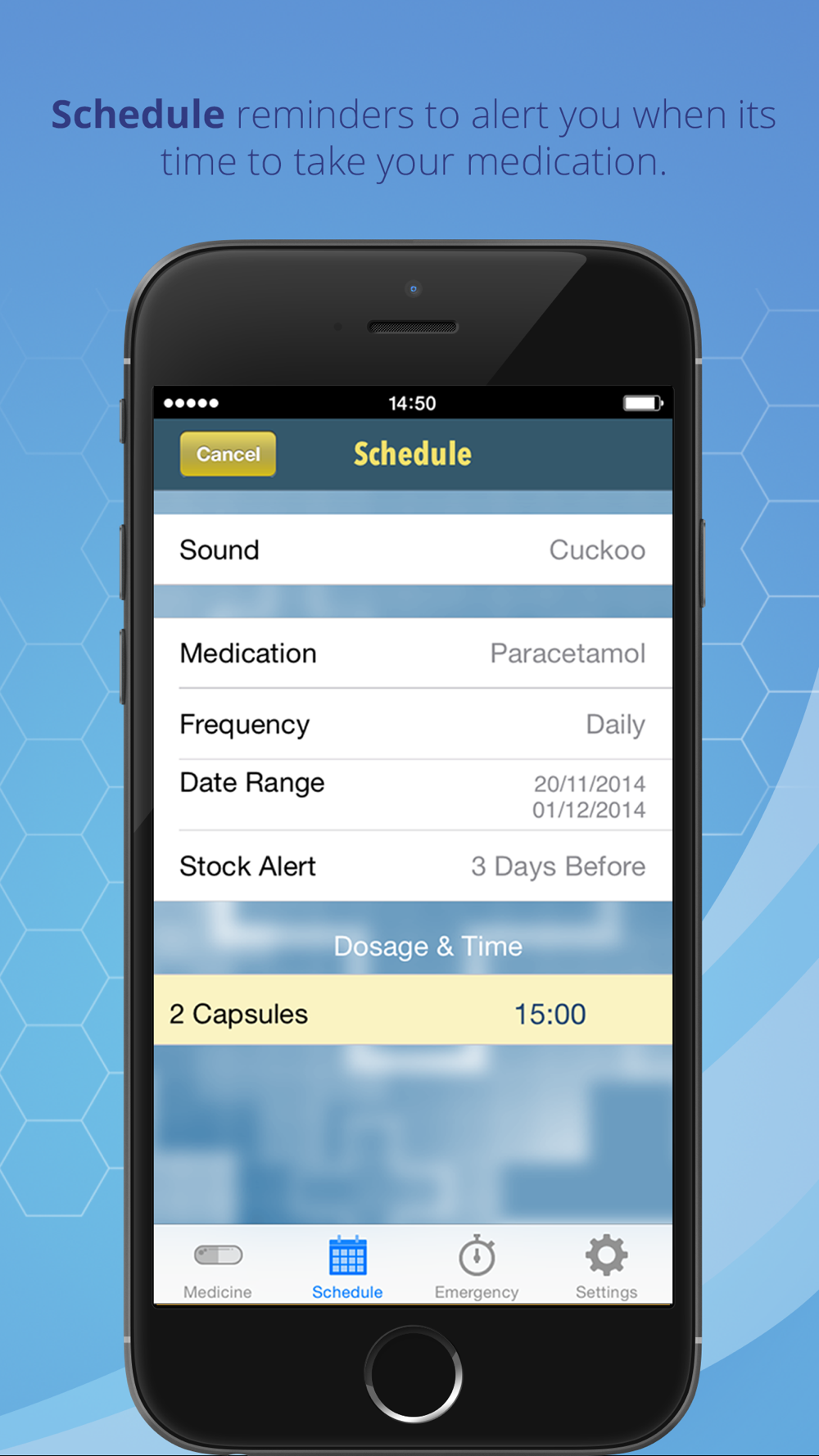 You can enter how many units of medicine you have been medically prescribed, how many you have taken and the app will update how many you have left, reminding you of how many units of the medicine you have left using our unique 'Stock Control' feature.