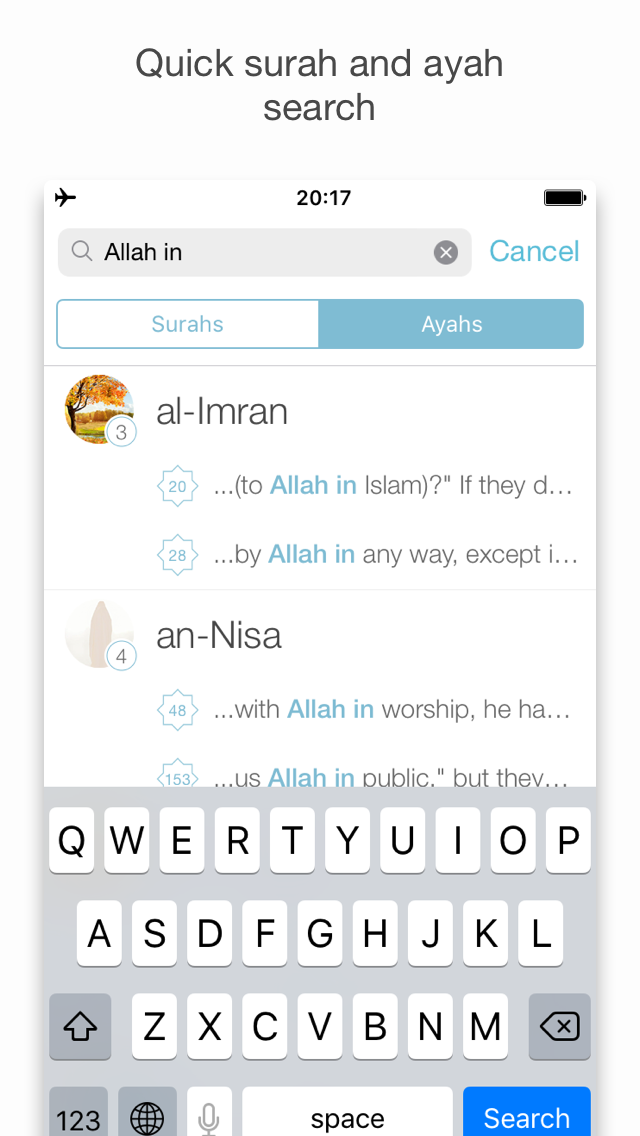 Please keep in mind, that you can share ayahs using e-mail, SMS, Facebook, Twitter, WhatsApp, Telegram, VK and other social networks.