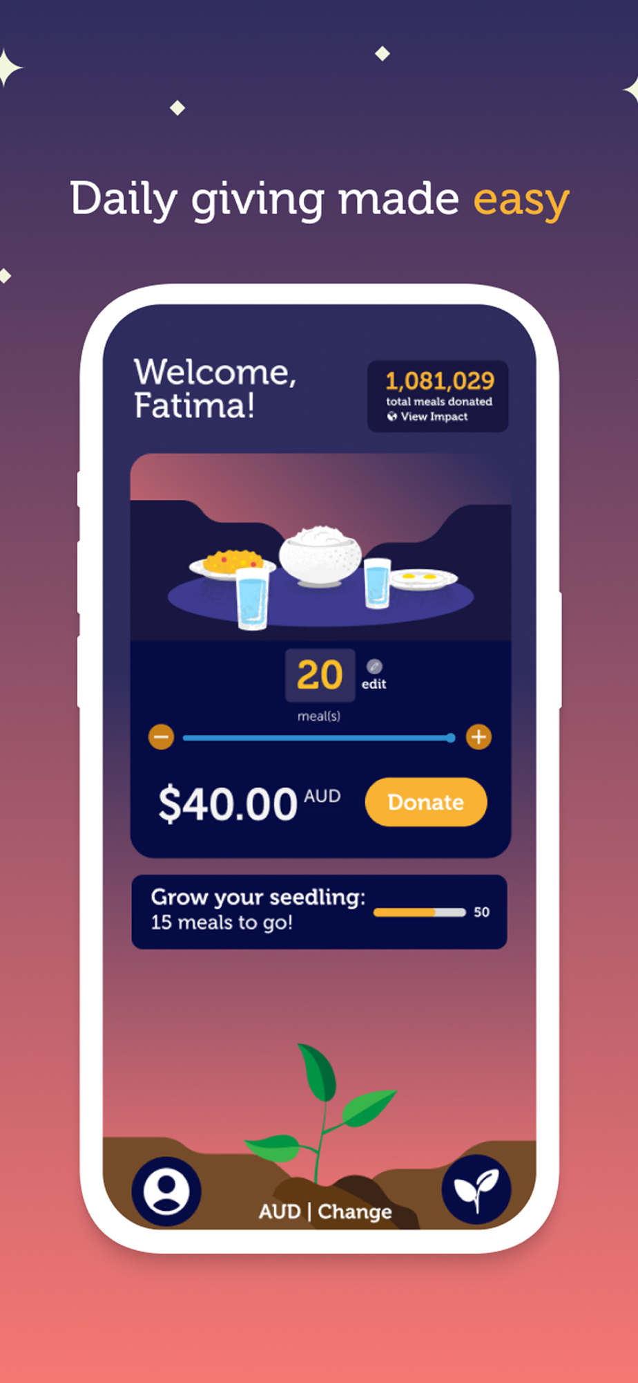 In just a few clicks, you can donate meals to those in need around the world. Use the App regularly to give more and increase your rewards.