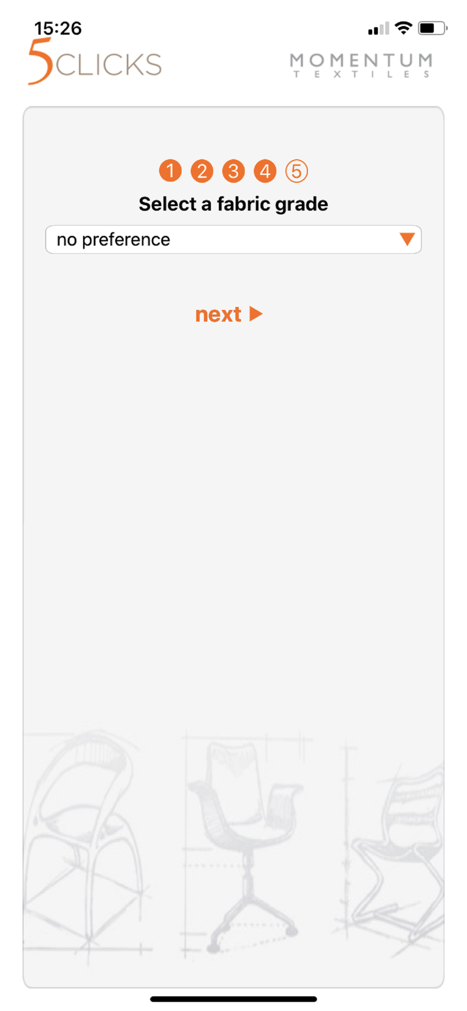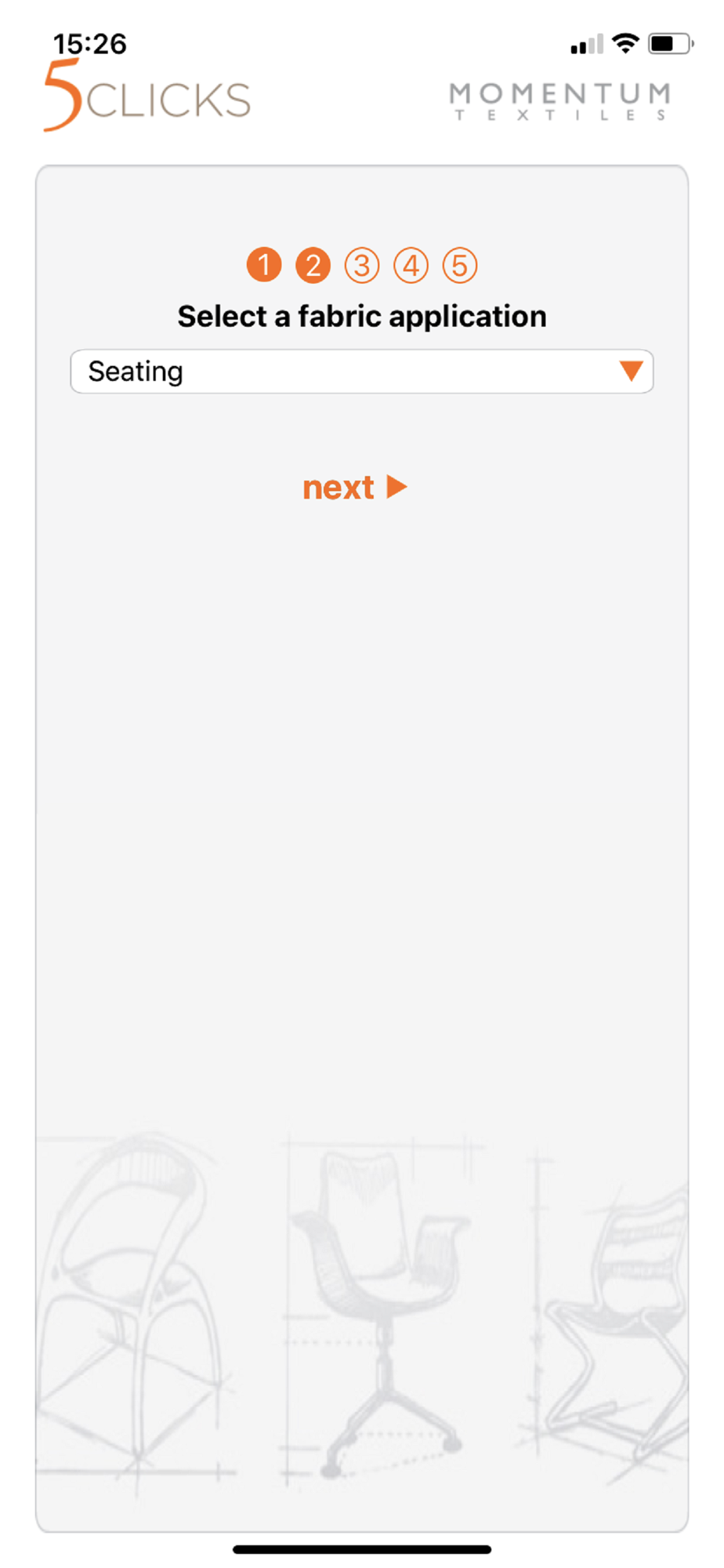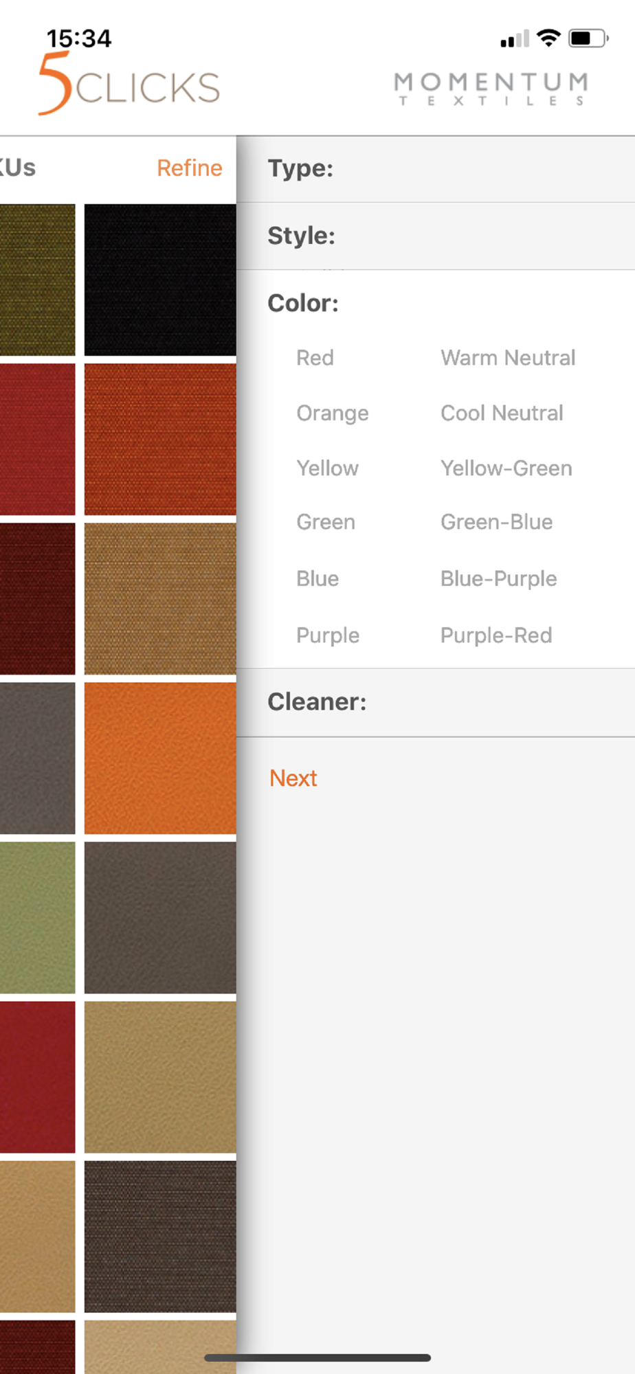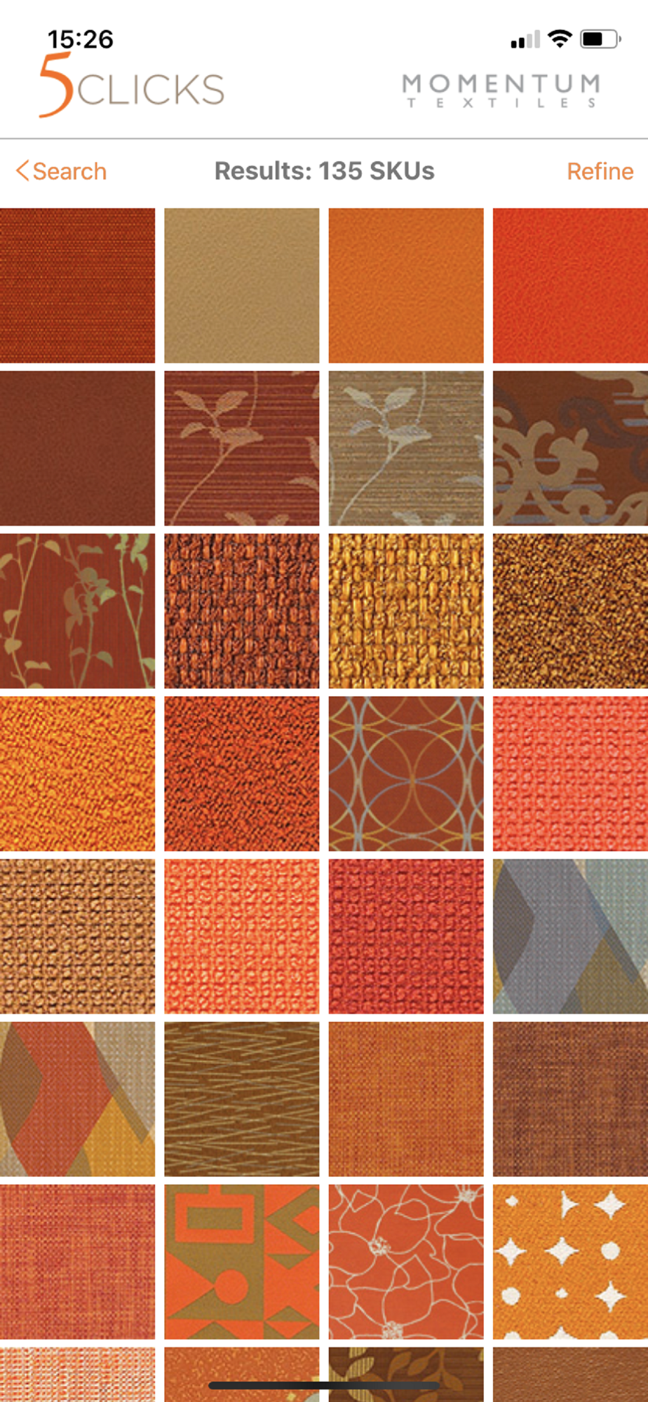 The 5 Clicks app helps you find thousands of Momentum Textiles colorways that are already pre-approved, in-grade, and in-stock.