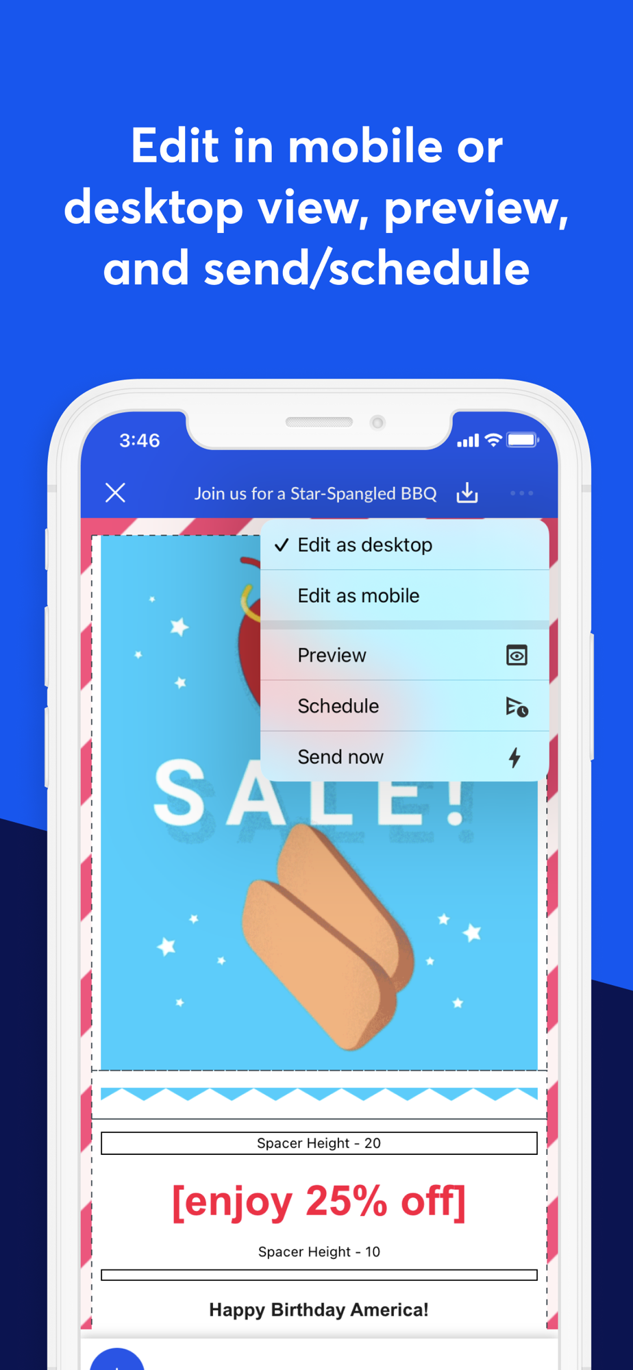 - Create and edit emails on the go using our best-in-class intuitive mobile editor