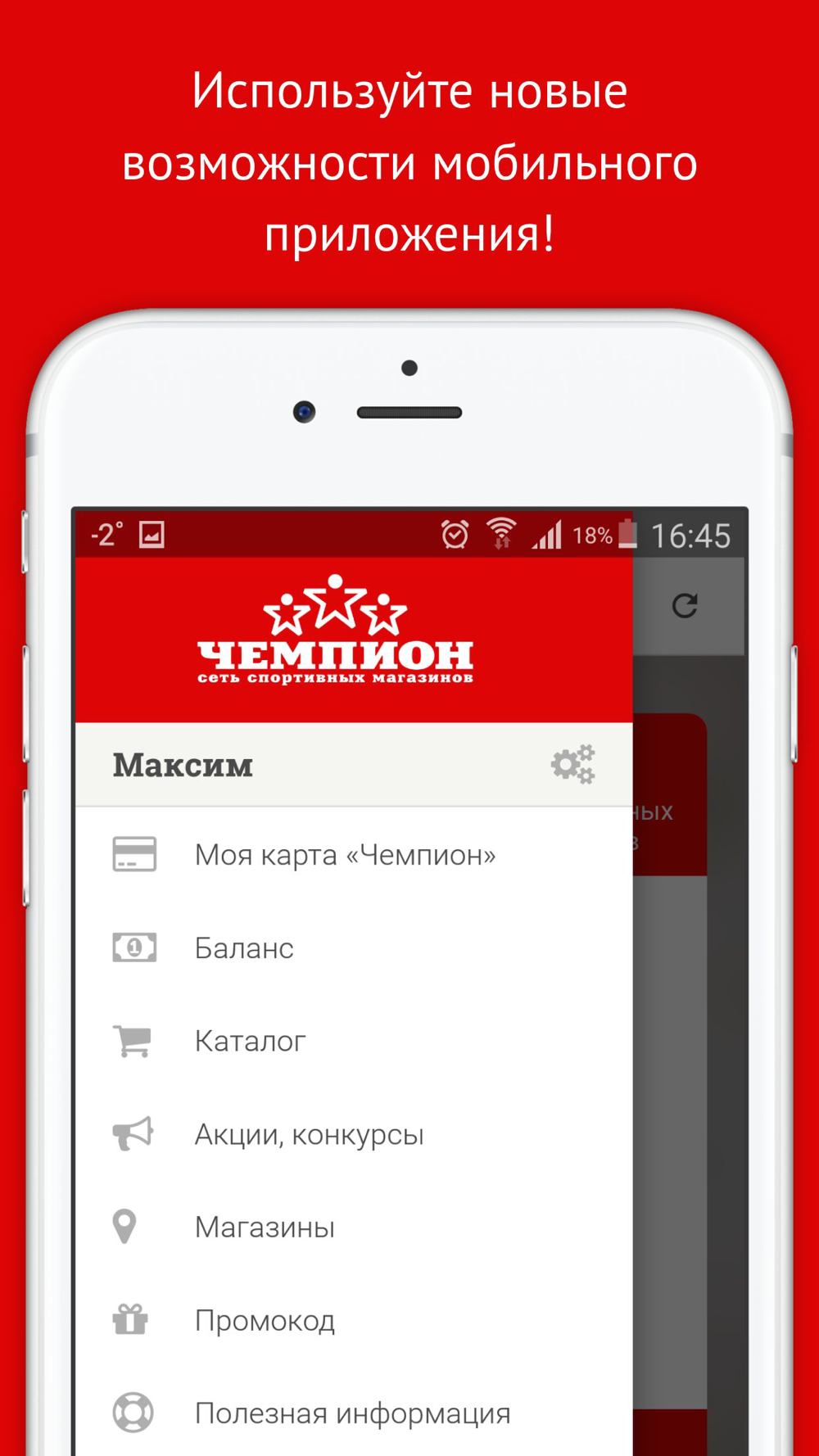 Теперь ты не забудешь дома карту, потому что она всегда в твоем мобильном. С новым приложением сети спортивных магазинов Чемпион ты сможешь получать баллы за покупки, зарабатывать их в конкурсах, тратить на новые покупки.