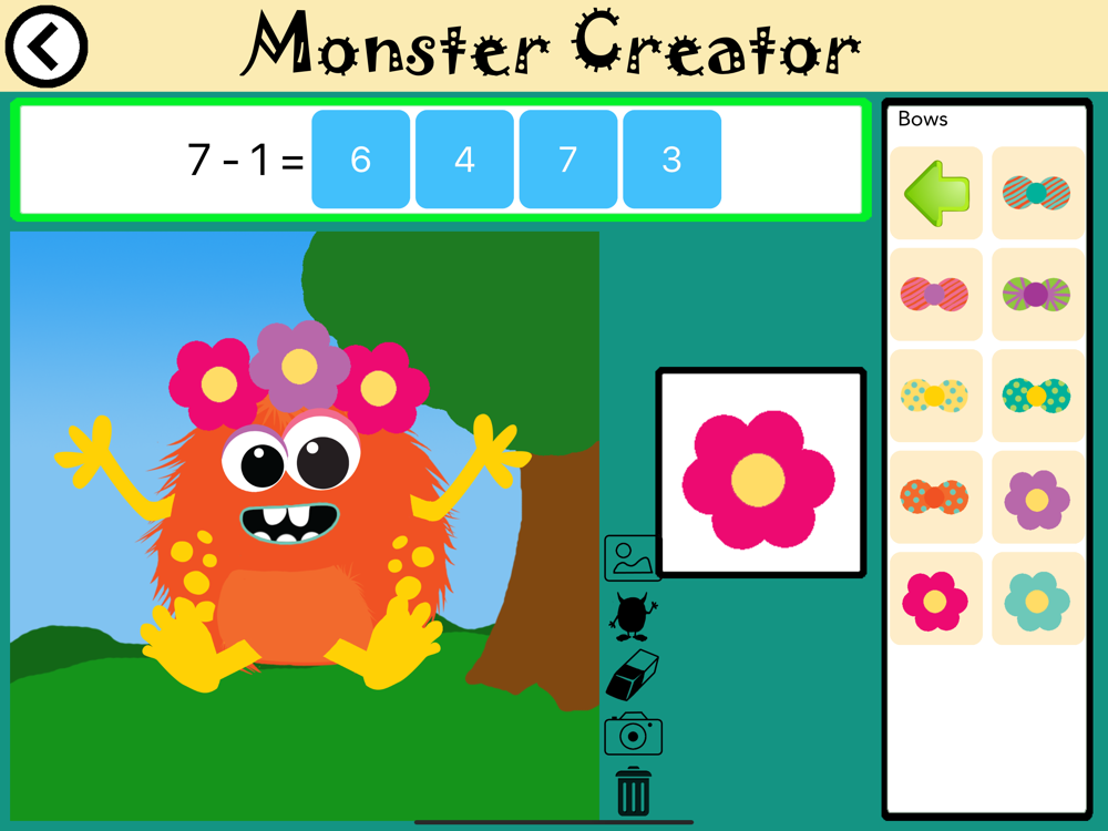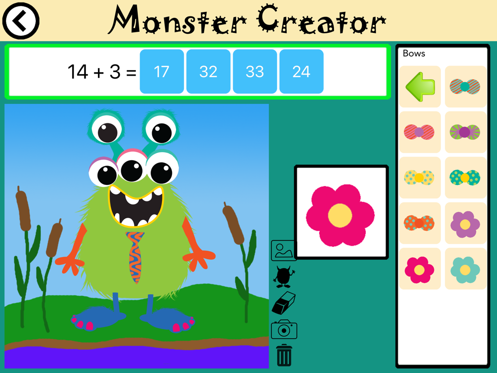 Monster Creator Math will help your child or student master addition and subtraction skills while creating monsters. Each time a correct answer is supplied to a problem, your child or student will be rewarded with a body part or piece of clothing to add to the monster.