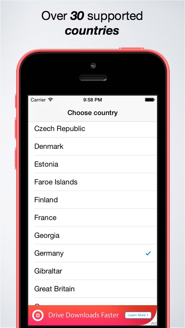 Country select for all participating countries in the SEPA-System plus many more, including the following: