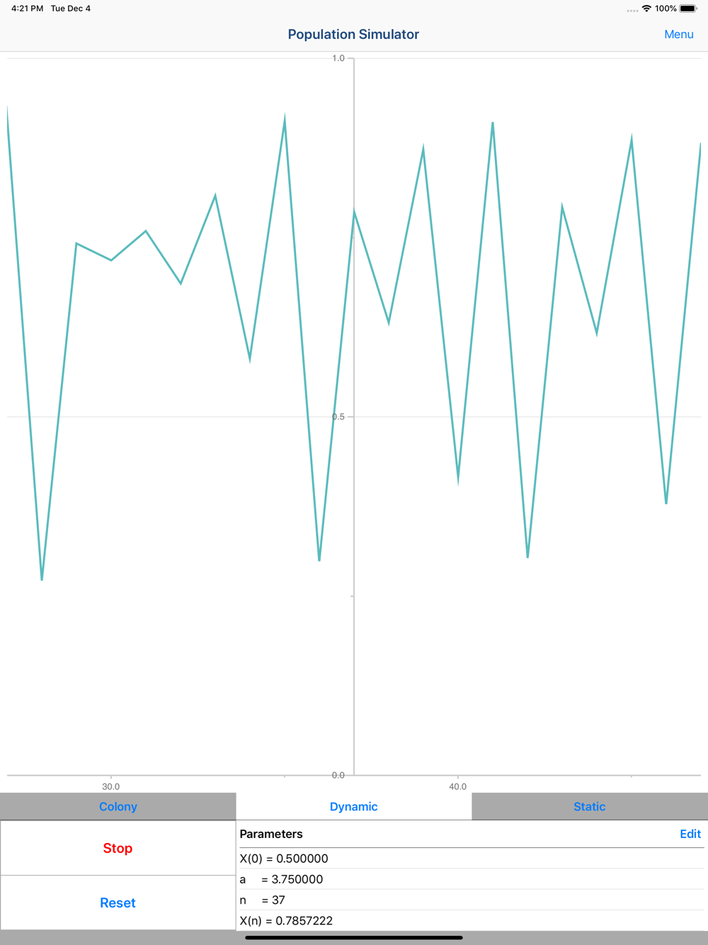 "Population simulator" is an application to visually see the changes in the population by using "Logistic Map".
