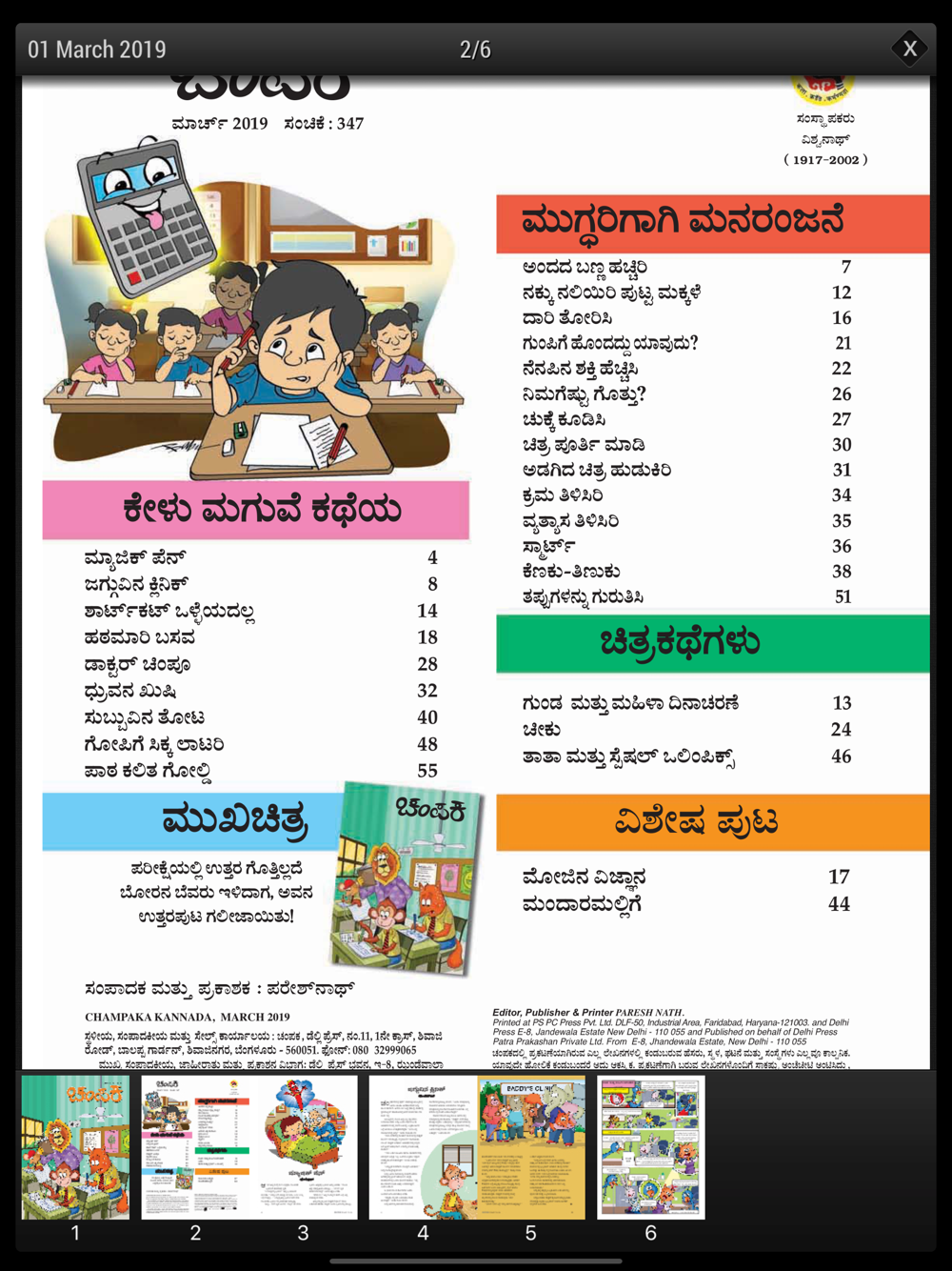 Champak is a name children swear by. Published in 8 languages,Champak is a bouquet of short stories, comic strips, puzzles, brain teasers and jokes that sets the child's imagination free. It is the largest read children's magazine in the country.