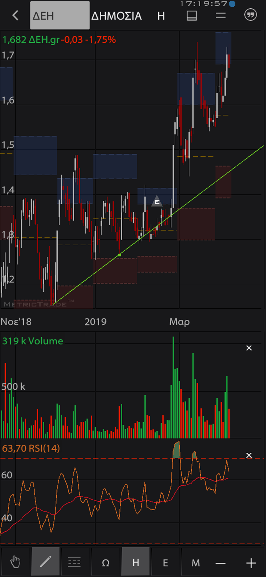 • Drawing Lines: Gann Fan, Fibonacci Arcs, Fibonacci Fan, Fibonacci Retracements, Fibonacci Time Zones, Speed Resistance Lines, Quadrant Lines, Trend Line, Horizontal Trend Line, Vertical Trend Line