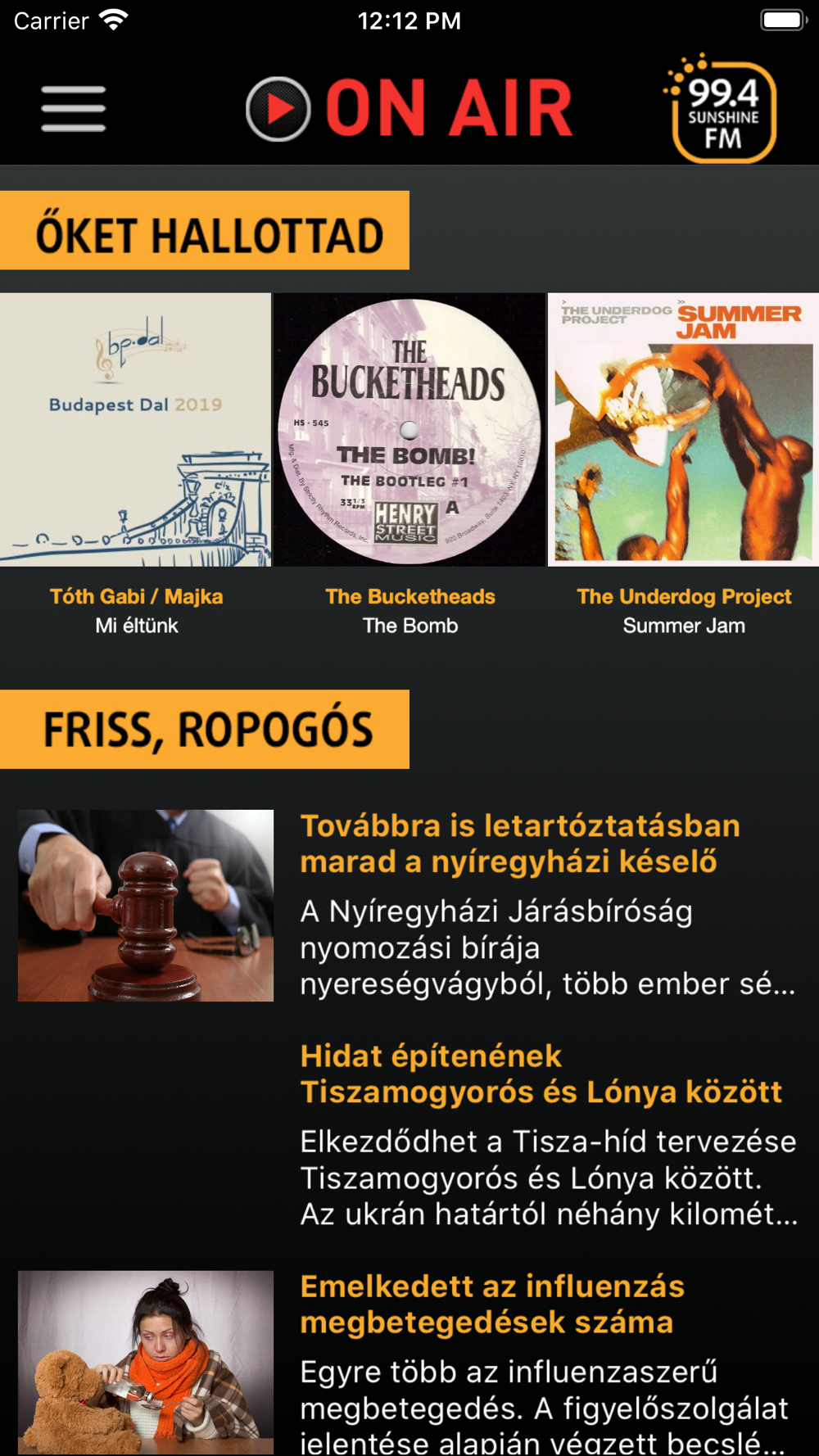 A nyíregyházai Sunshine FM hivatalos applikációja