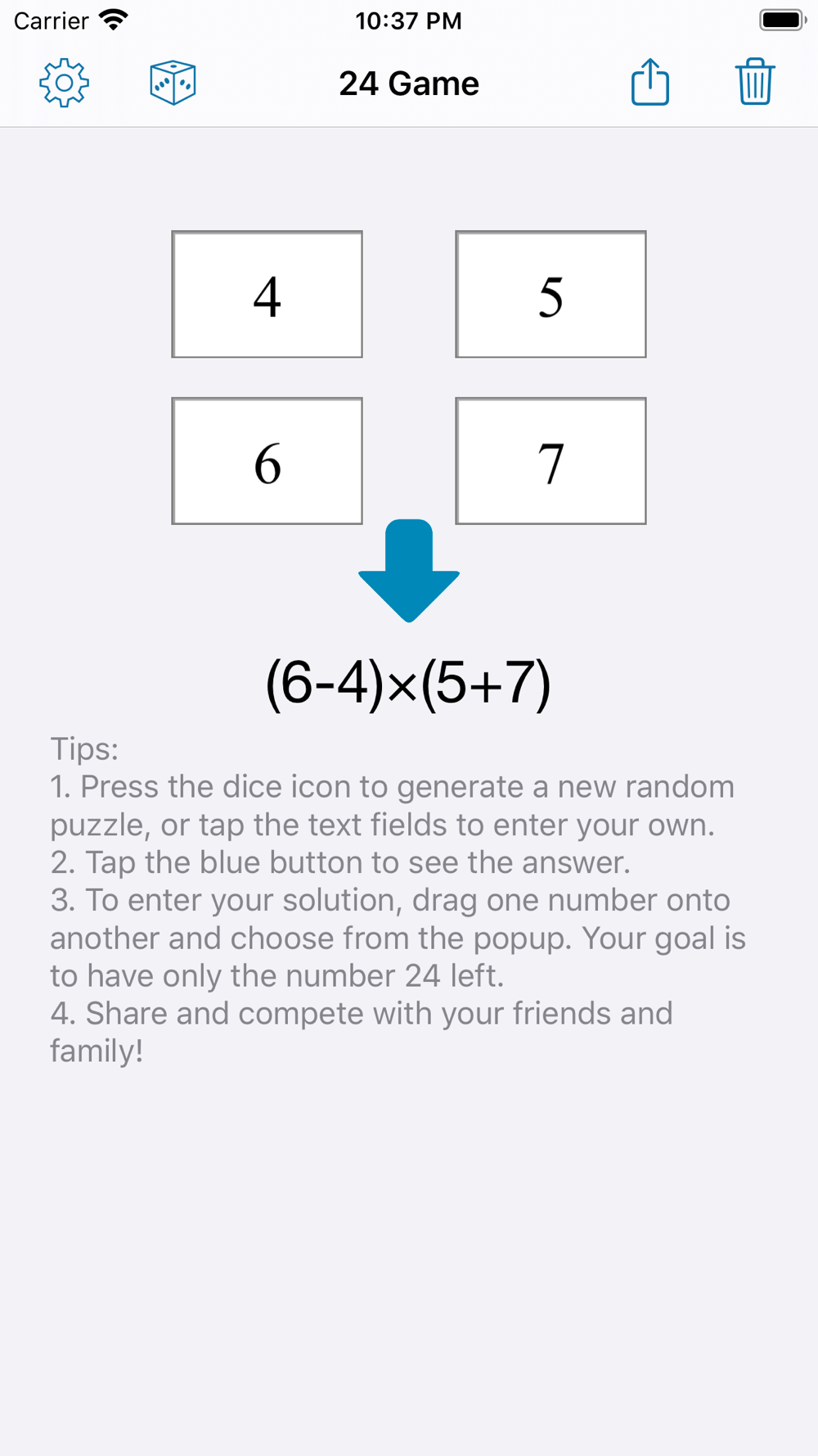 Ever wondered whether there is a solution to a set of four numbers? This app notifies you if there's no result.