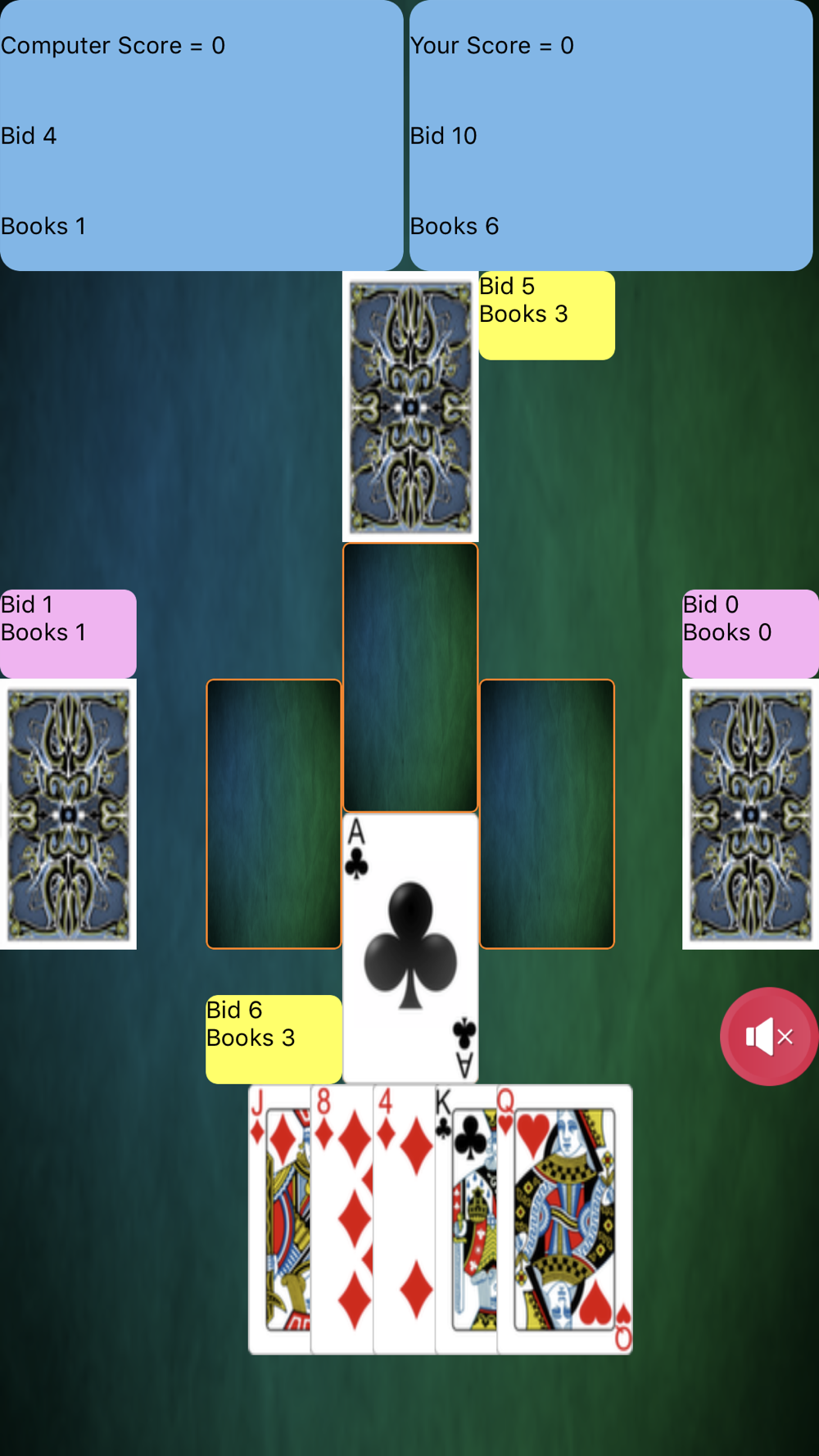 Spades - County Rules is a variation on the Spades card game where there aren't any points over bids (bags), blinds, nil bids, and books are counted on an one to one basis. It is also a team game. Your Team against the Computer Team. The emphasis is on bids with County Rules, either you make the bid and get the points or you don't. The minimum bid is 4 and the maximum is 10. You don't get any extra points for making 10 but it will put you in a much better place because your opponent will be set. The first team to 25 wins. There is also a Quick game options where the first team to 10 wins.