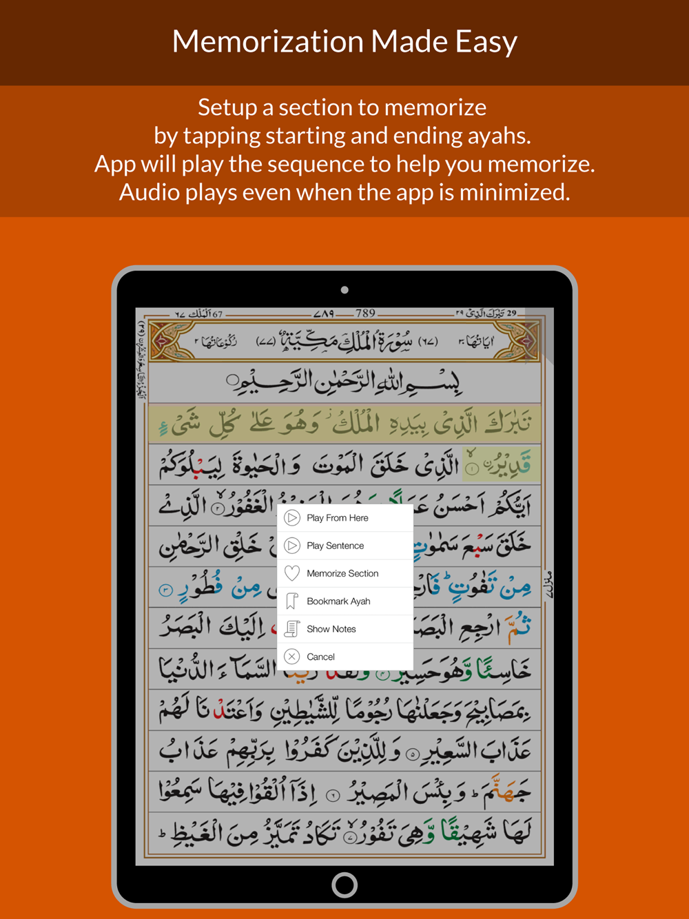 - Memorize sections - Hifz friendly mode to repeat lines or section multiple times
