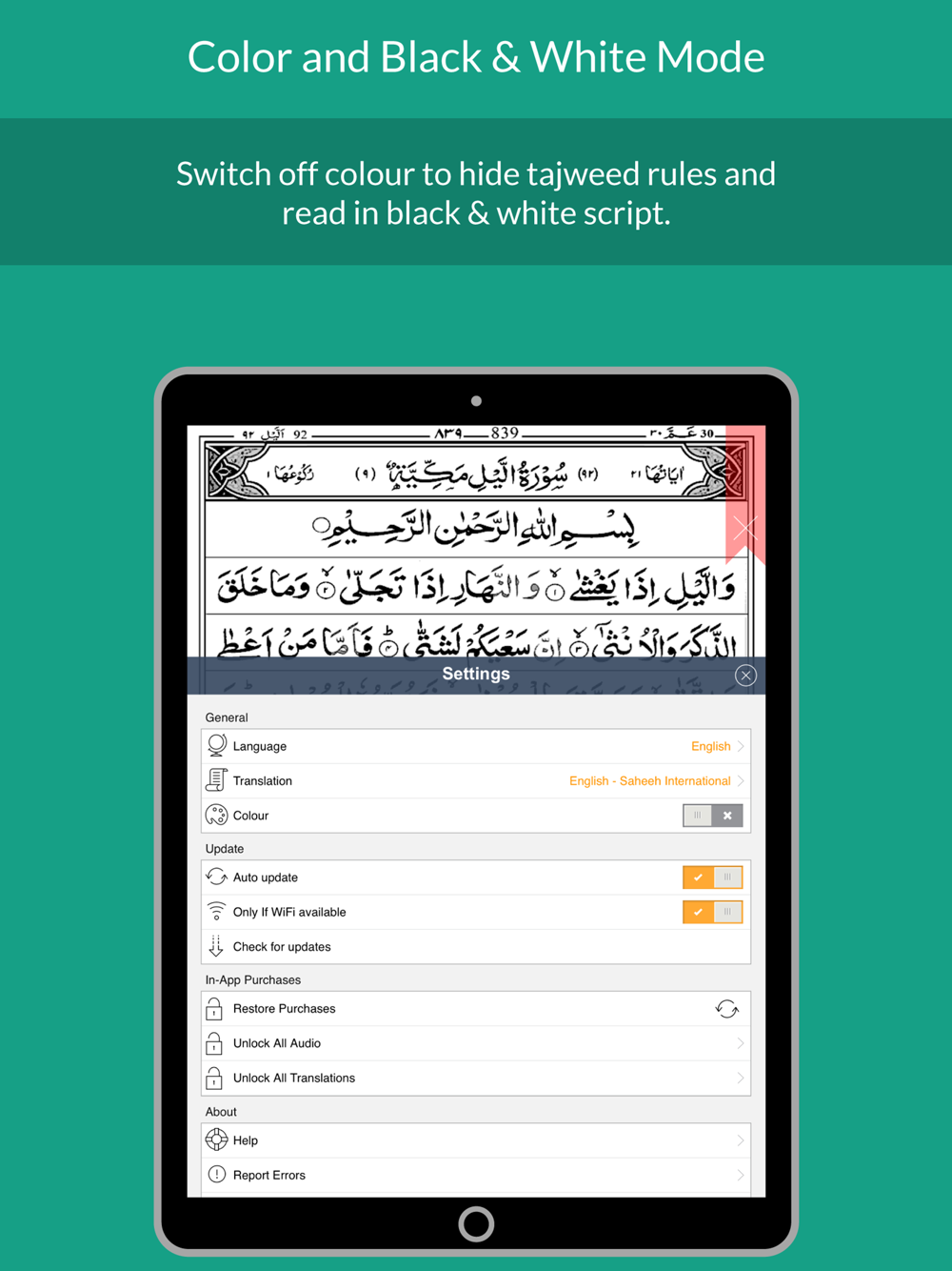 - In App purchase to gain access to more audio which includes 20+ reciters listed below: