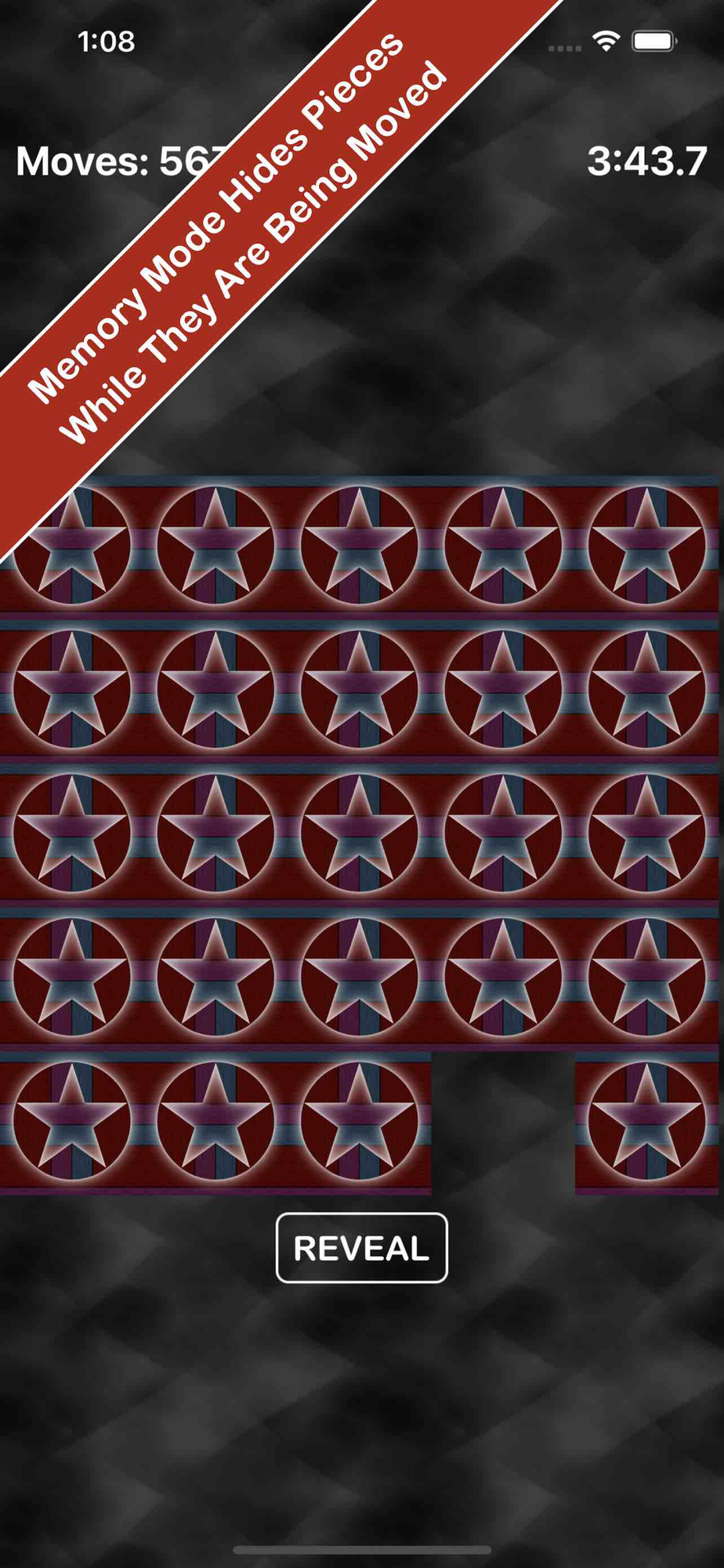 Each game variation can be played in either normal or "memory mode". In memory mode, the pieces are hidden as soon as you start moving them. The clock only runs while the board is visible, so the more you can do by memory, the better your time will be!