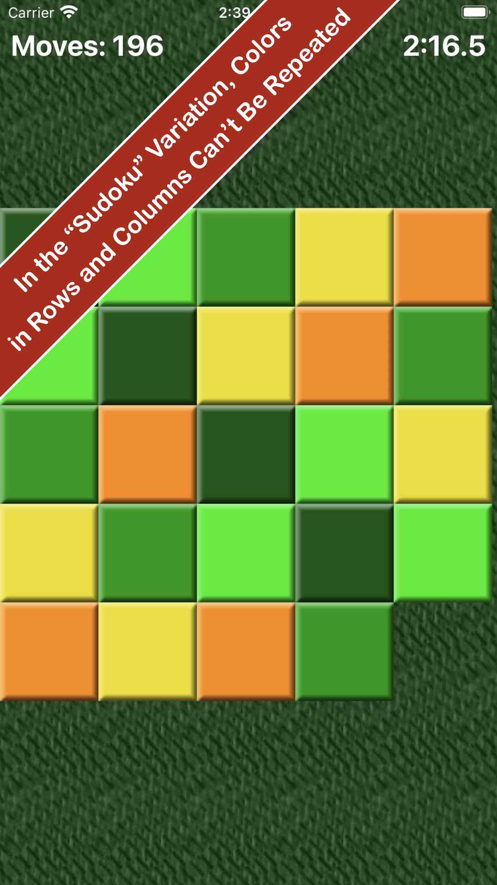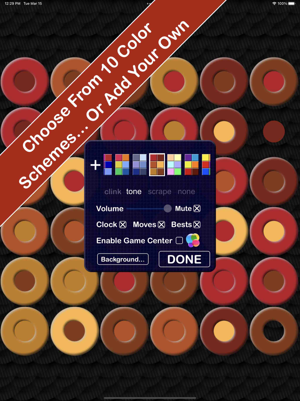 "Sudoku Slide Puzzle" combines slide puzzles and Sudoku logic (not repeating a number or color within a single row or column). "Ring Slide Puzzle" is a colorful new option, where you move colored rings to surround circles drawn on the playing area. And, of course, there is the classic slide puzzle, which can be played with one of the built-in images, or using your own photos (with or without numbers or letters on the pieces).