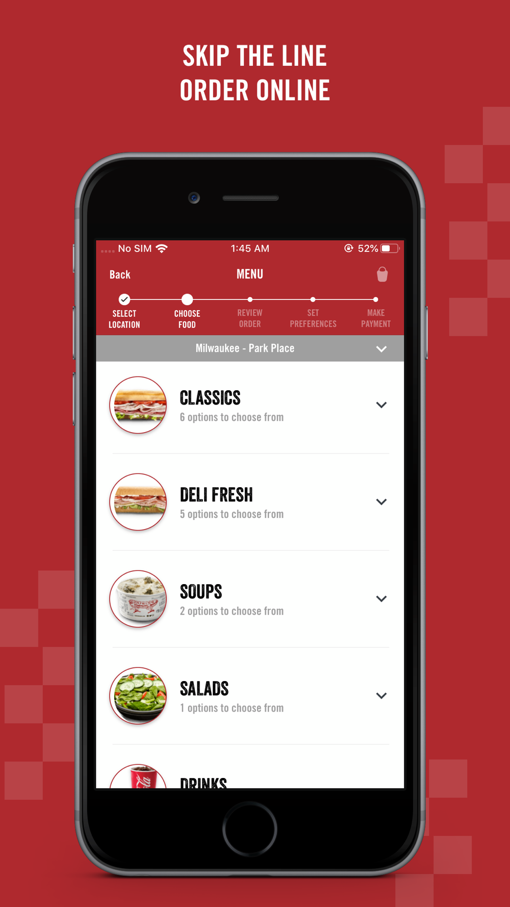 - Order food through the app – we’ll save your favorite items and let you know of our limited time offers.