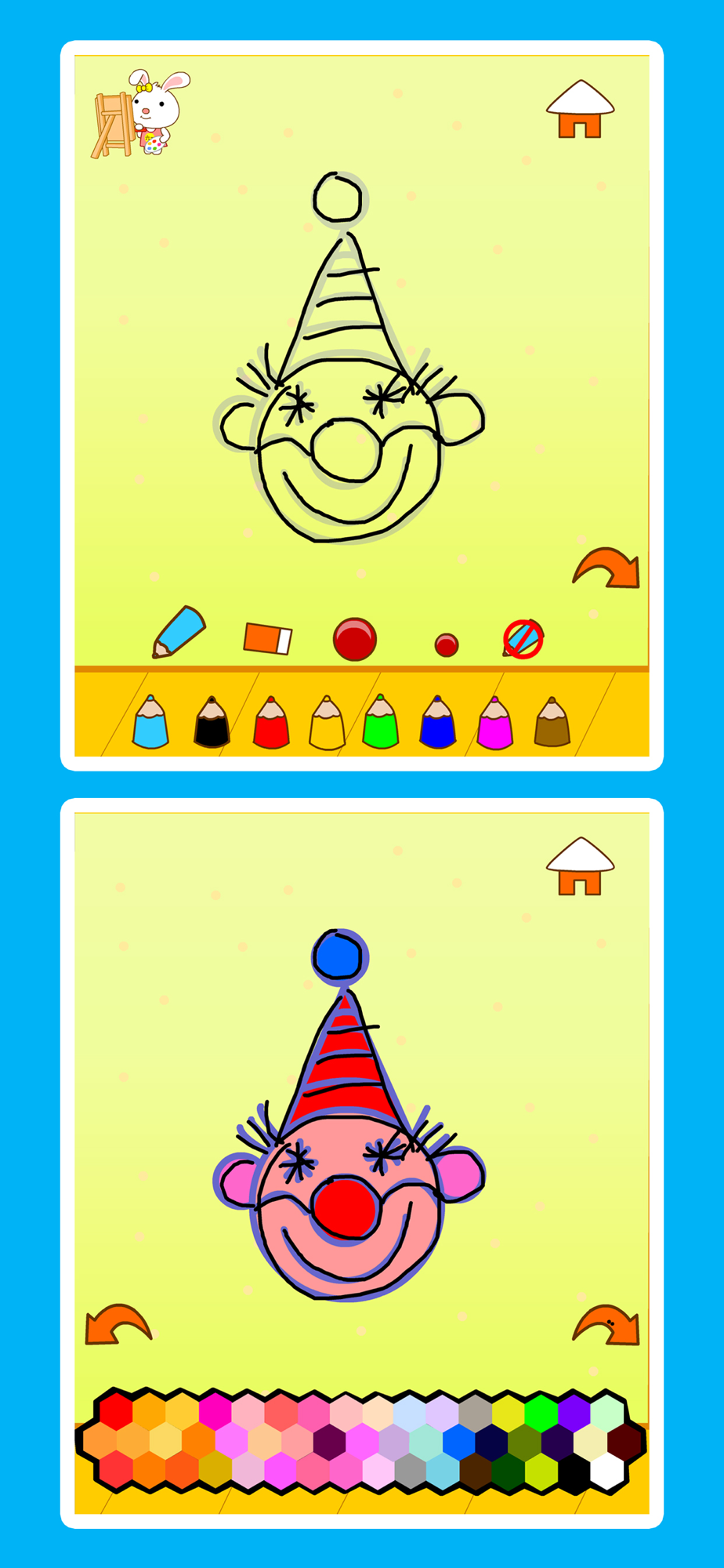 Hint: You can touch the bunny on the left corner to get hints to draw the faces.