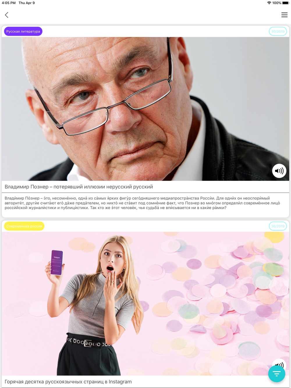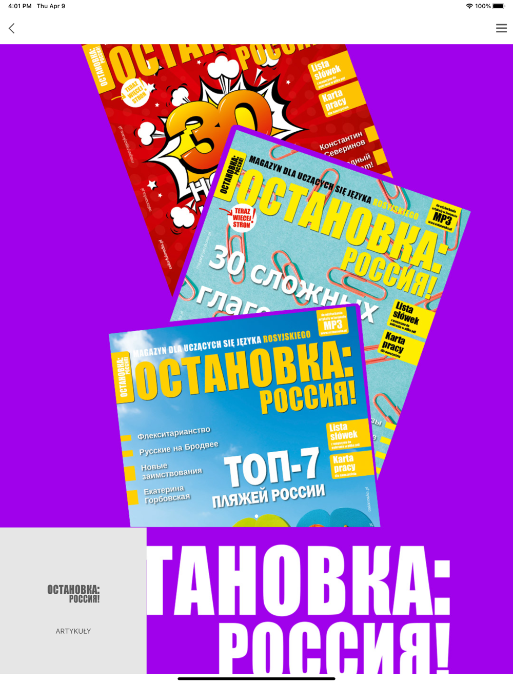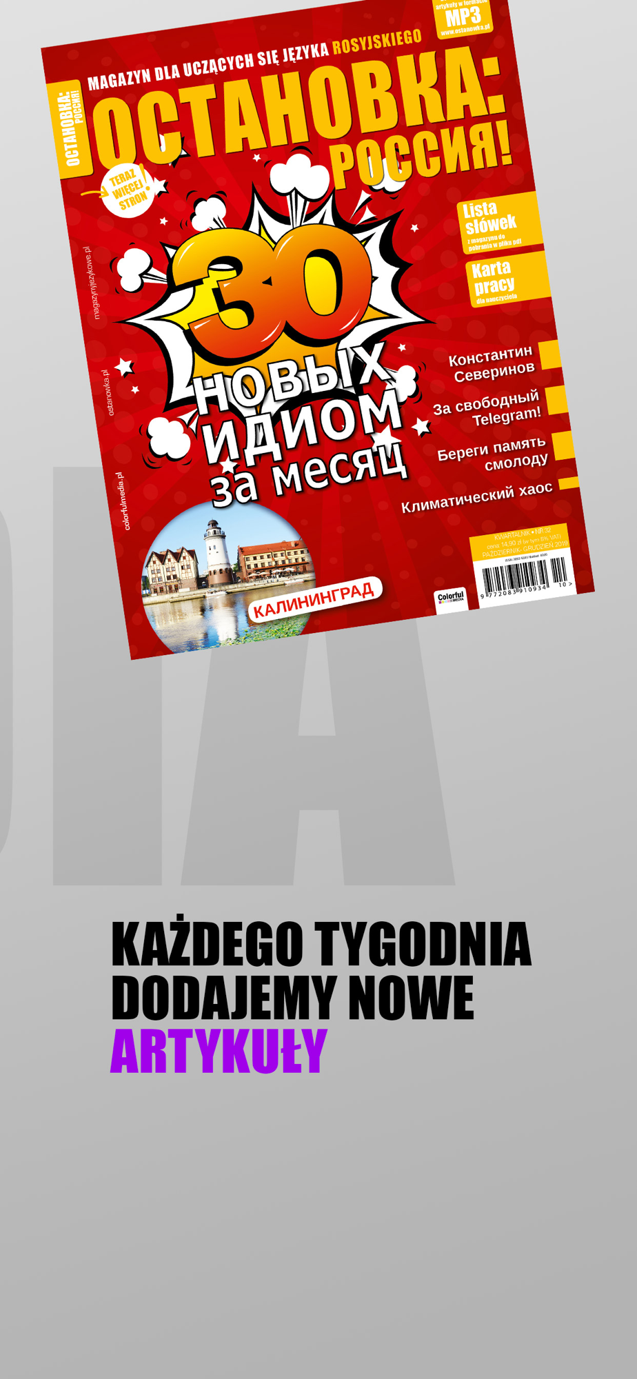 Aplikacja Ostanowka: Rossija! to wspaniałe narzędzie do doskonalenia znajomości języka rosyjskiego. Udostępniamy Państwu setki artykułów o bogatej tematyce. Każdy z nich wzbogacony jest o słownik z tłumaczeniami najtrudniejszego słownictwa. Każdego tygodnia dodajemy nowe teksty.